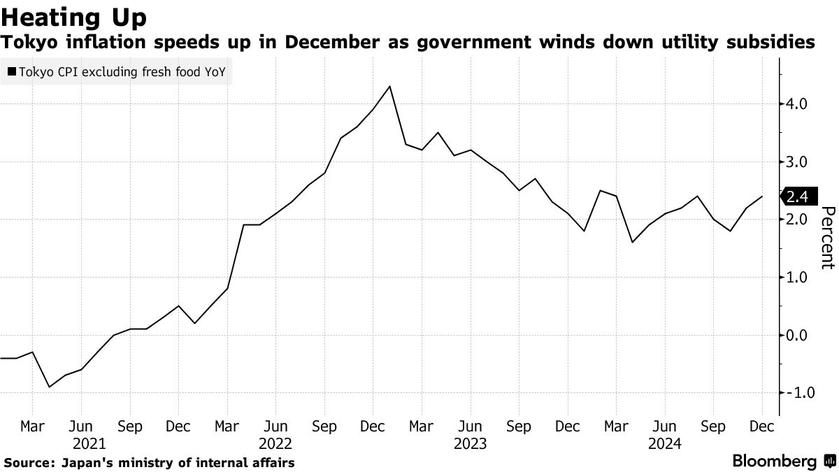 东京的通货膨胀在12月加速增长,连续第二个月,而劳动力市场依然紧张,这些结果在很大程度上使日本银行保持明年加息的轨道。