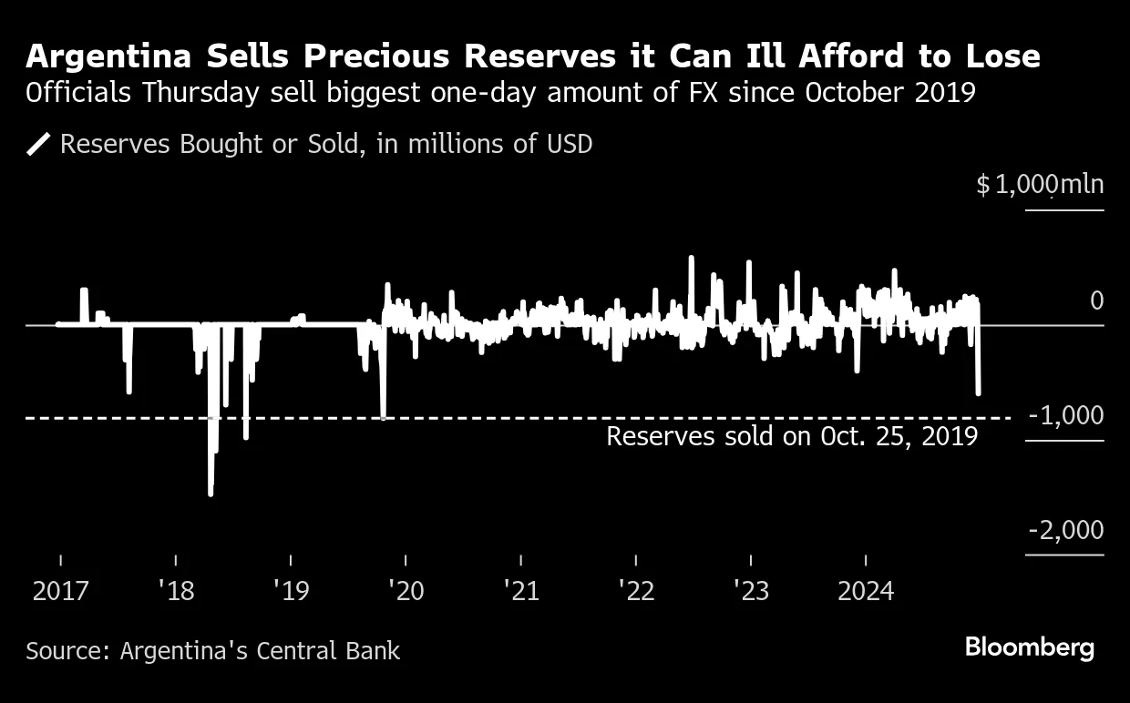 阿根廷自2019年以来出售最大量的外汇储备 - 彭博社