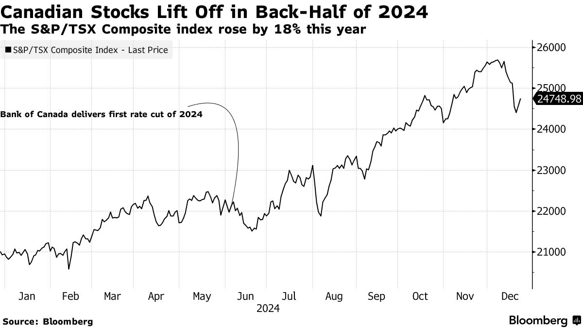 策略师们押注加拿大的TSX明年将达到28,000点,因为利率下降 - 彭博社