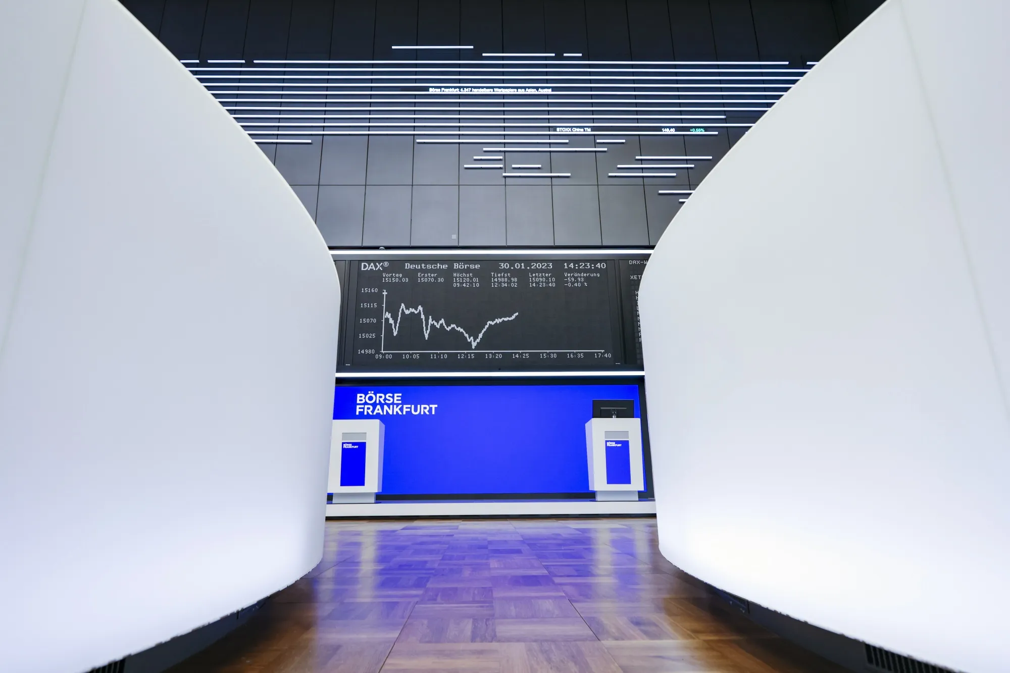 DAX指数的收益曲线在德国法兰克福证券交易所的屏幕上显示。
