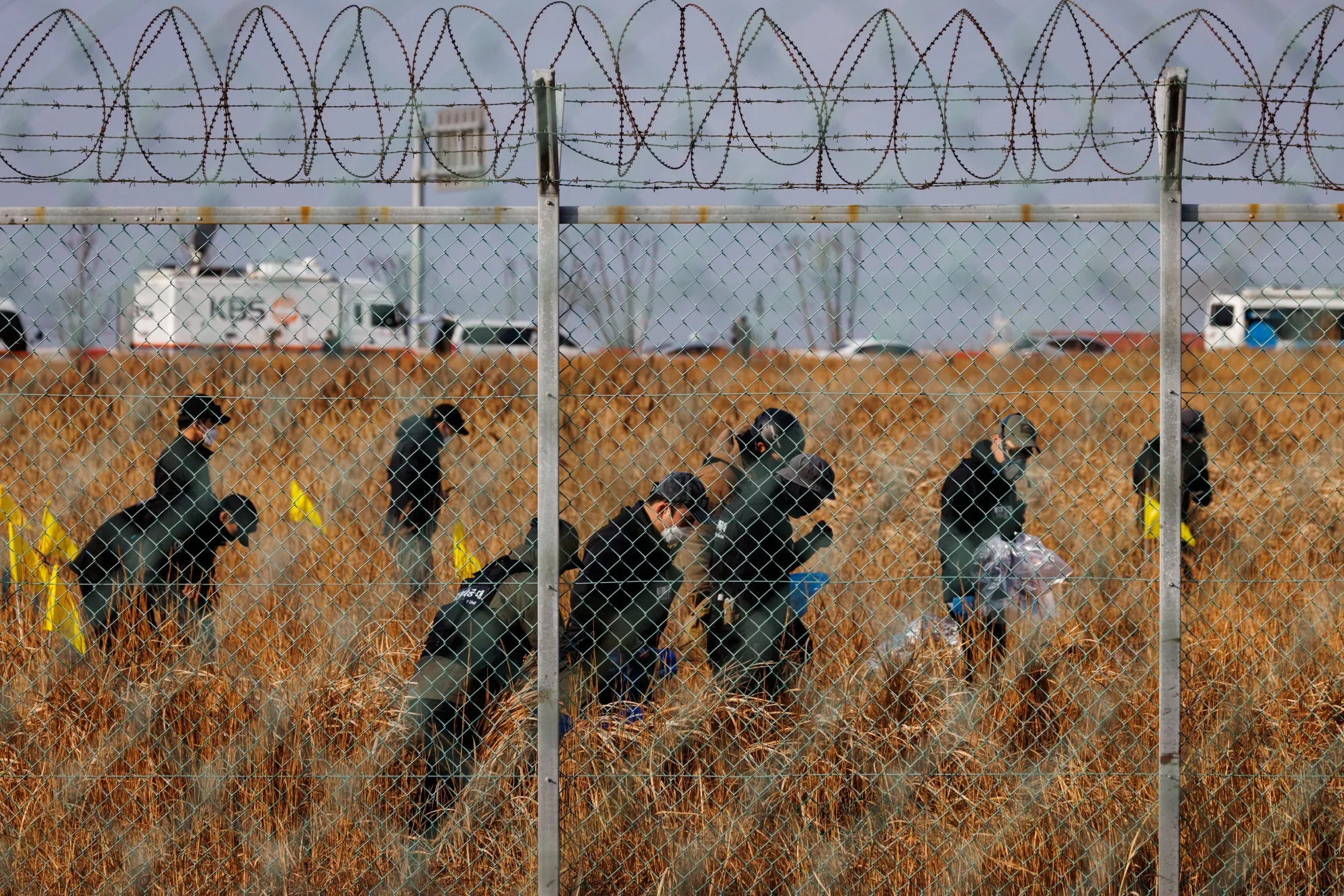 调查人员于12月30日在务安国际机场检查济州航空公司2216航班的残骸。