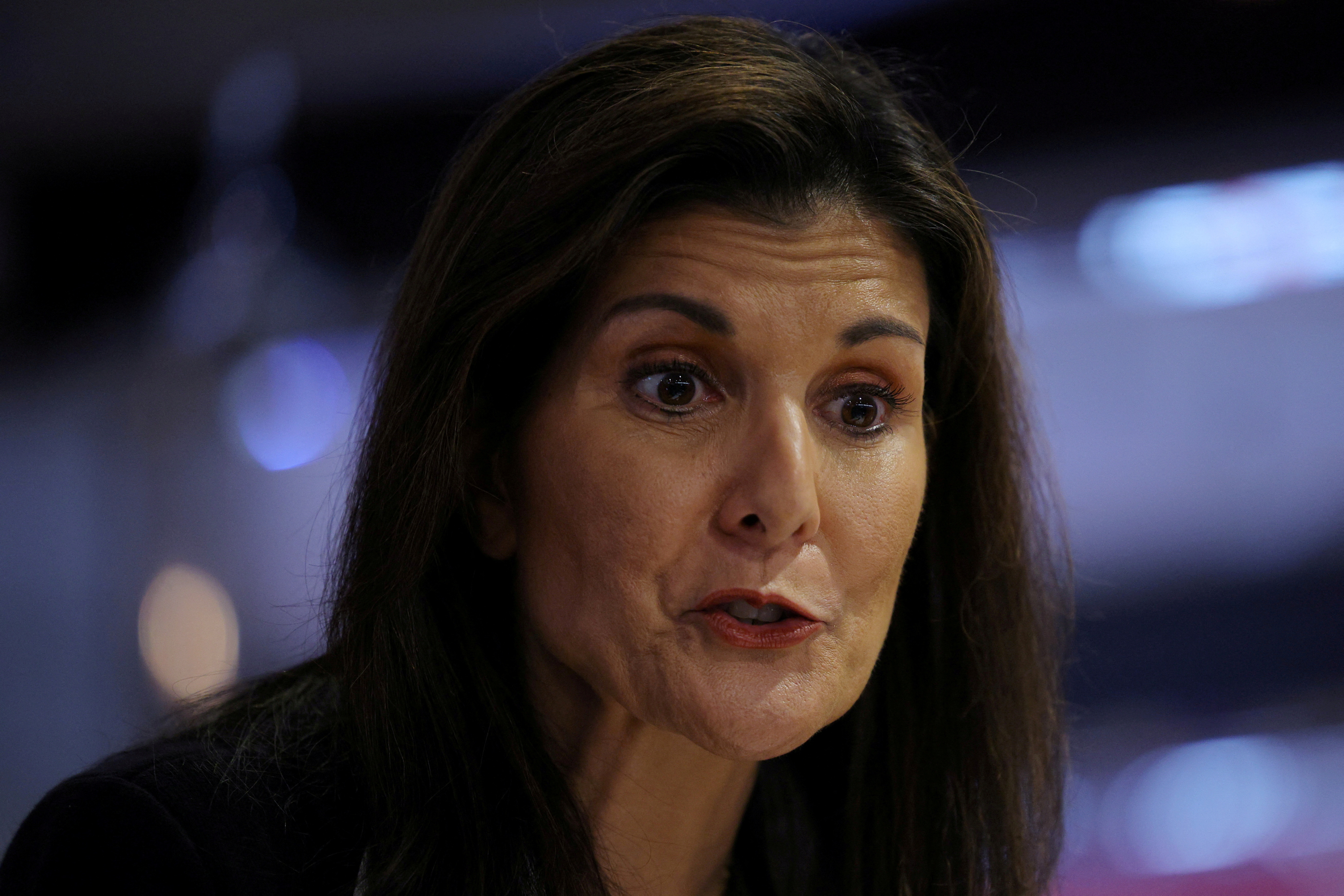 共和党总统候选人、前美国驻联合国大使尼基·黑利在新罕布什尔州阿默斯特市的玛丽安餐厅进行竞选活动,准备参加1月19日举行的新罕布什尔州初选。美国,2024年1月19日。路透社/Brian Snyder/文件照片