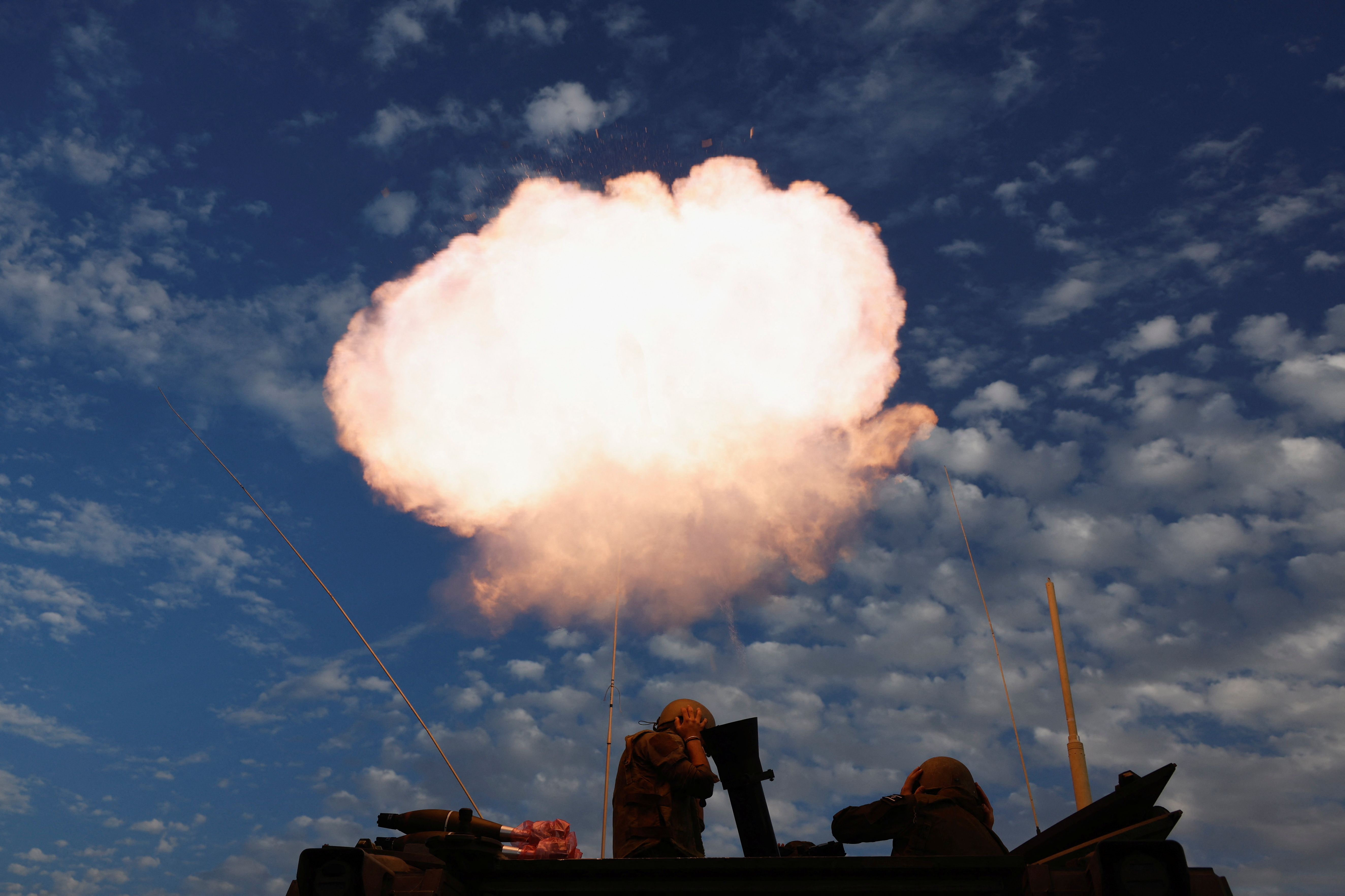 一辆坦克停在与加沙中部边界附近,以色列和巴勒斯坦伊斯兰组织哈马斯之间的冲突仍在持续,2024年1月22日,以色列,路透社/Amir Cohen