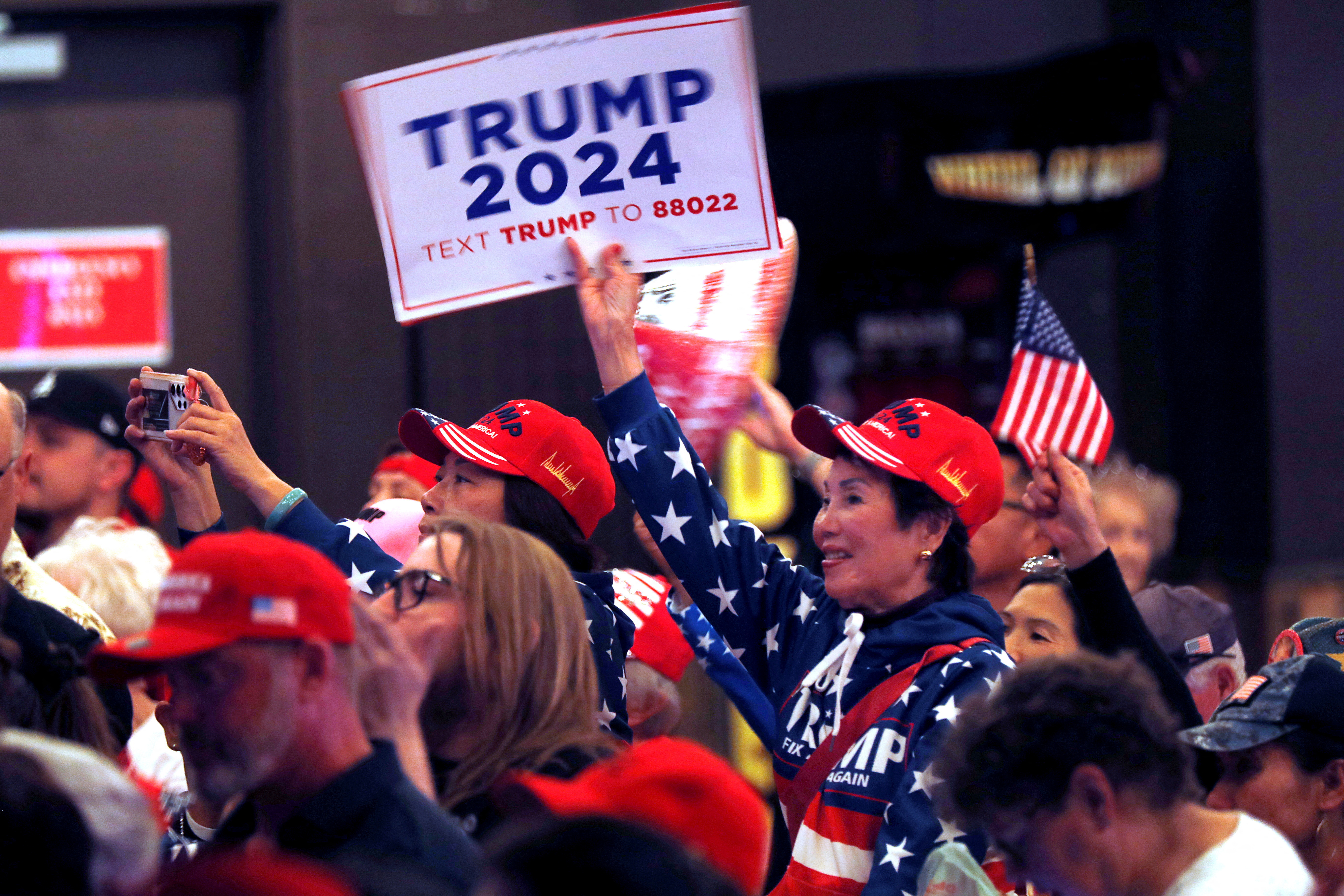 支持者们聆听前美国总统唐纳德·特朗普在内华达州拉斯维加斯举行的特朗普团队内华达州支持集会上的讲话,2023年10月28日,美国内华达州。路透社/史蒂夫·马库斯/文件照片