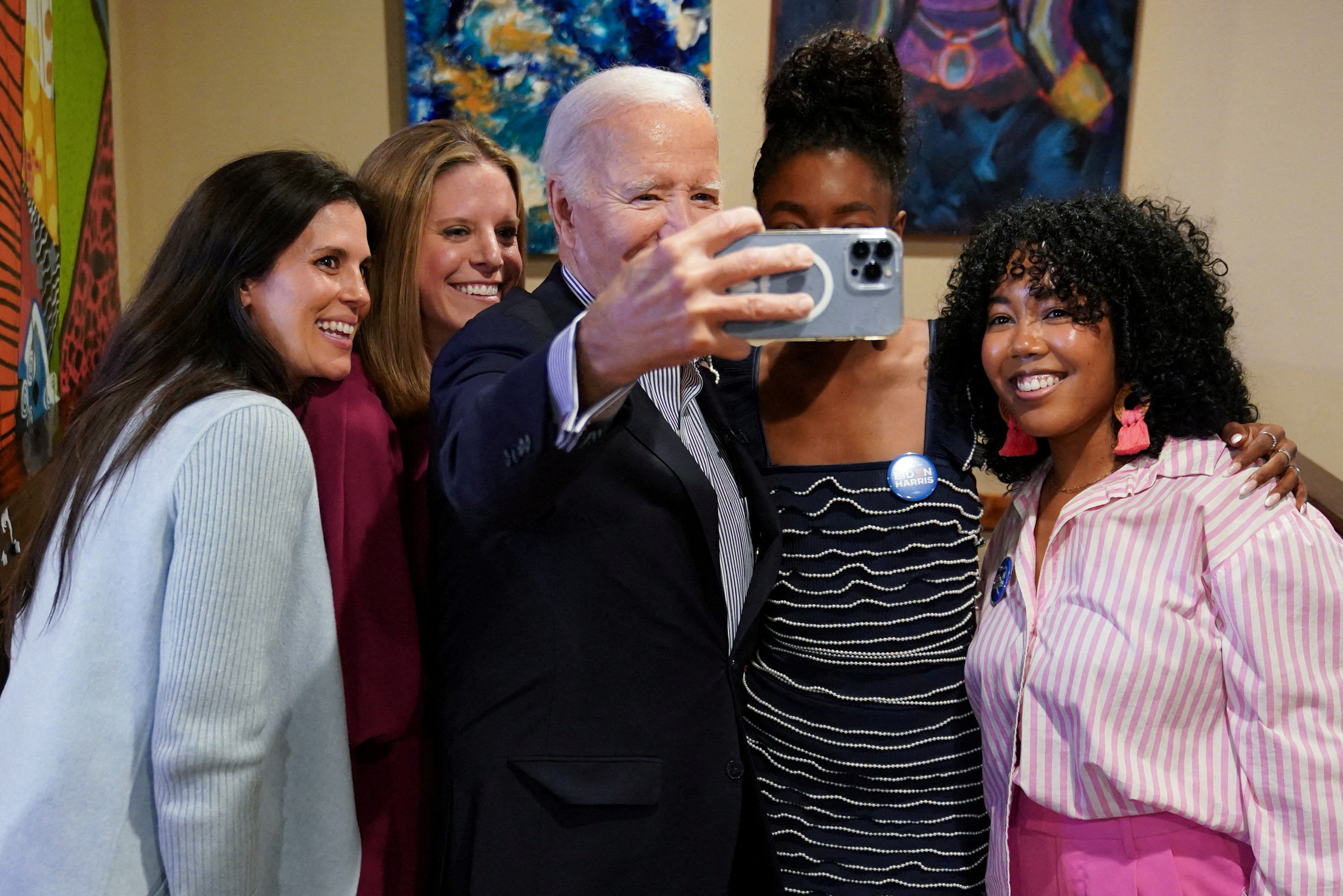 美国总统乔·拜登在2024年1月8日访问美国南卡罗来纳州查尔斯顿期间在汉尼拔厨房餐厅自拍。路透社/Kevin Lamarque/文件照片