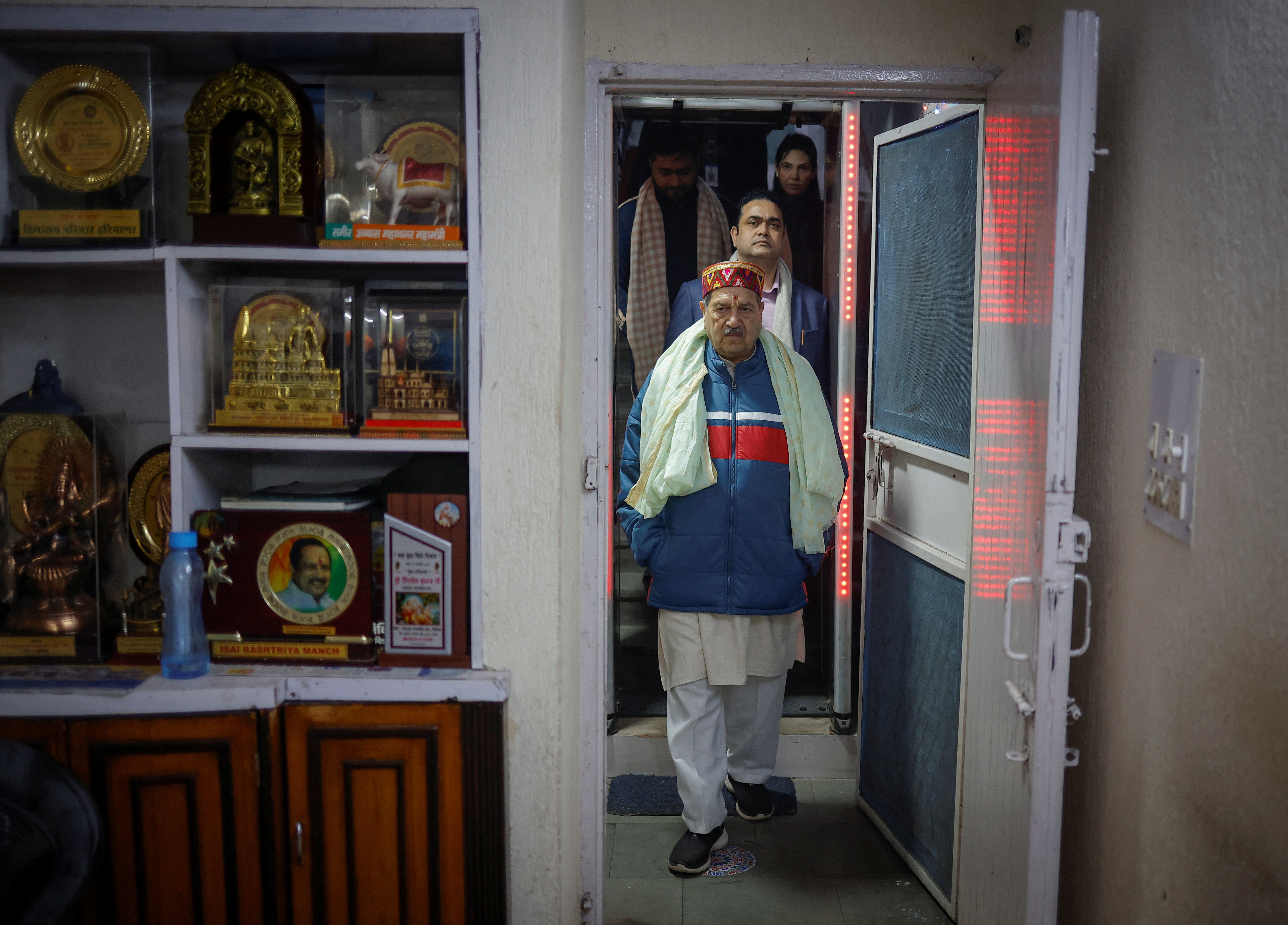 印德雷什·库马尔(Indresh Kumar)是印度教民族主义组织拉什特里亚·斯瓦亚姆塞瓦克·桑格(RSS)的高级领导人,他于2024年1月26日抵达新德里办公室。路透社/阿德南·阿比迪(Adnan Abidi)摄