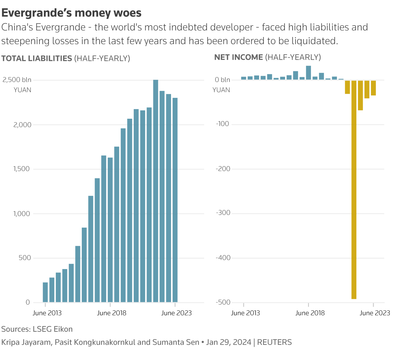 恒大清算凸显投资者对中国债务的绝望 | 路透社