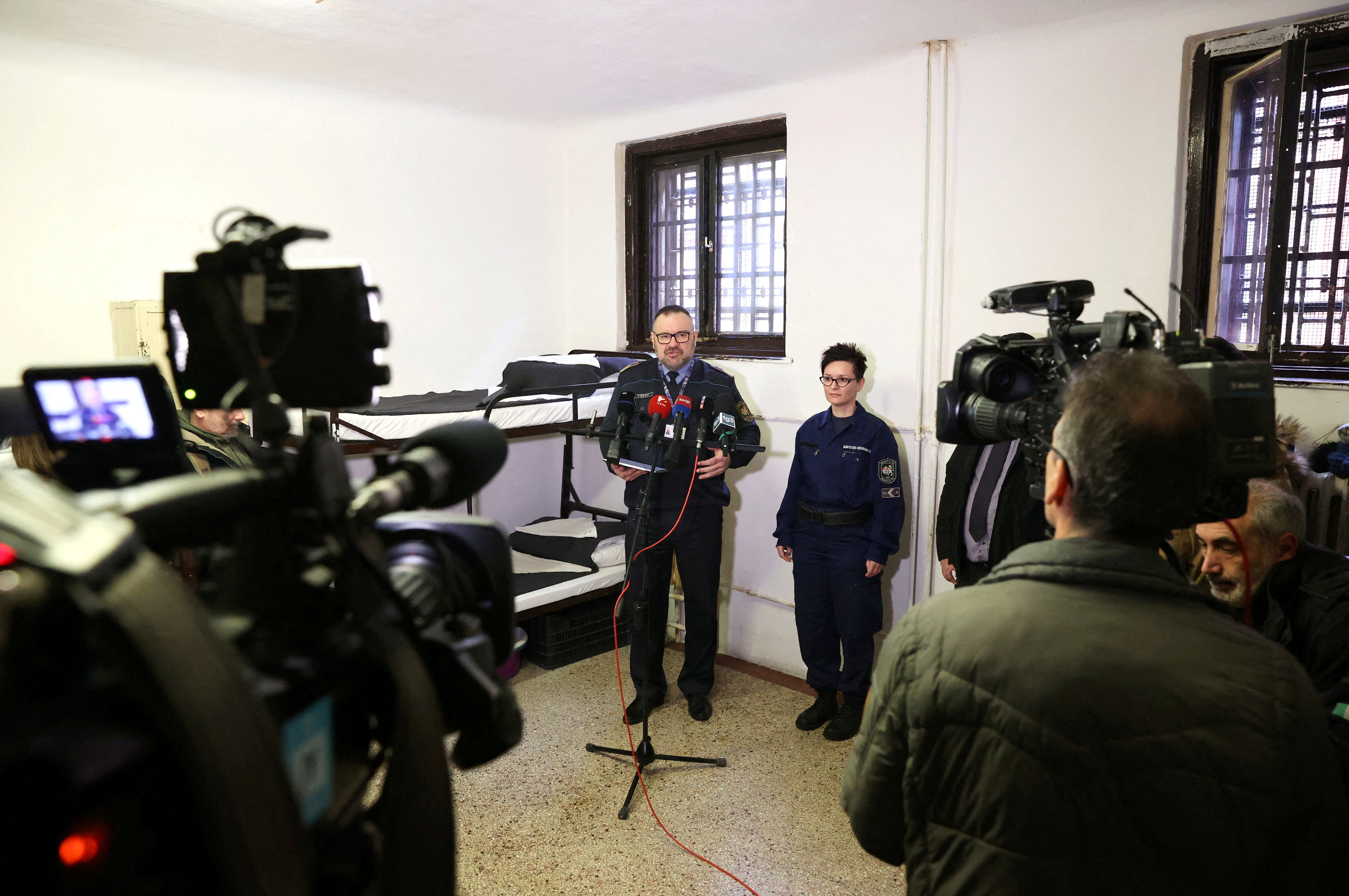 匈牙利监狱管理局周三向记者展示了Salis被关押的大约25平方米的牢房,重申他们提供符合国际标准的适当治疗,包括每天三餐并注意特殊饮食要求,以及获得医疗保健服务的权利。