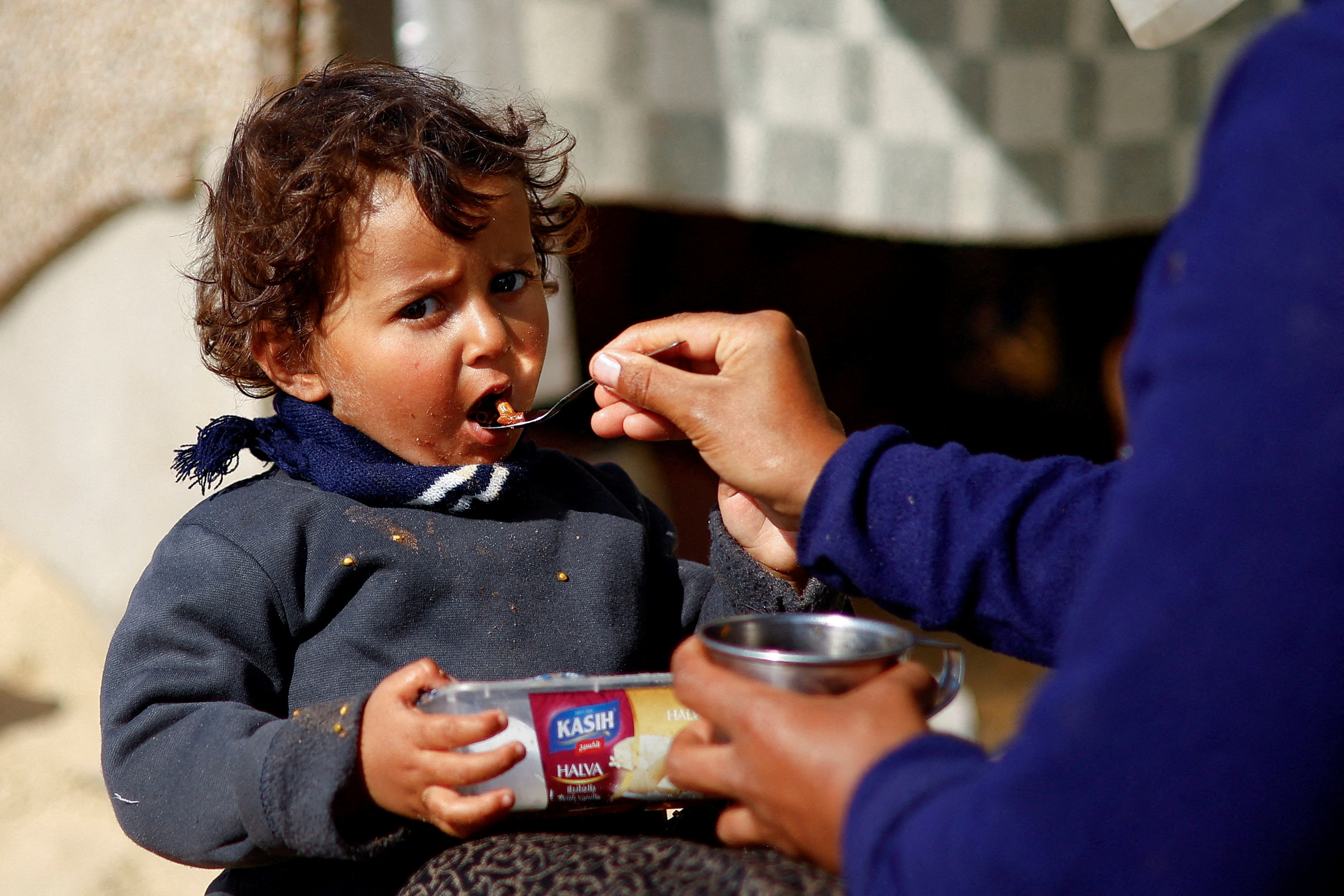 由于以色列的袭击而逃离的巴勒斯坦流离失所的儿童在加沙南部的拉法,2024年2月20日持续的以色列和哈马斯冲突中进食。路透社/伊布拉希姆·阿布·穆斯塔法摄罗马,2月20日(路透社) - 世界粮食计划署周二表示,由于巴勒斯坦飞地的条件不允许安全分发,将暂停向北部加沙地带提供粮食援助。加沙直到巴勒斯坦飞地的条件允许安全分发,我们暂停向加沙北部地区提供粮食援助,这一决定并非轻率,因为我们知道这意味着那里的情况将进一步恶化,更多的人面临饥饿死亡的风险,总部位于罗马的联合国粮食计划署在一份声明中表示。周一,世界粮食计划署、世界卫生组织和儿童机构联合国儿童基金会表示,加沙四个多月以色列和哈马斯 战争期间,食物和安全饮用水“极度匮乏,疾病猖獗……导致急性营养不良激增”。北部的粮食危机特别严重,一月份有六分之一的两岁以下儿童被报告为急性 营养不良,而“今天的情况可能更加严重”,这些机构表示。世界粮食计划署表示,由于对联合国巴勒斯坦难民机构(UNRWA)卡车的袭击和“没有运行的人道主义通报系统”,他们已于周日恢复了对北部的粮食援助,这是因为这些援助在三周前被暂停。