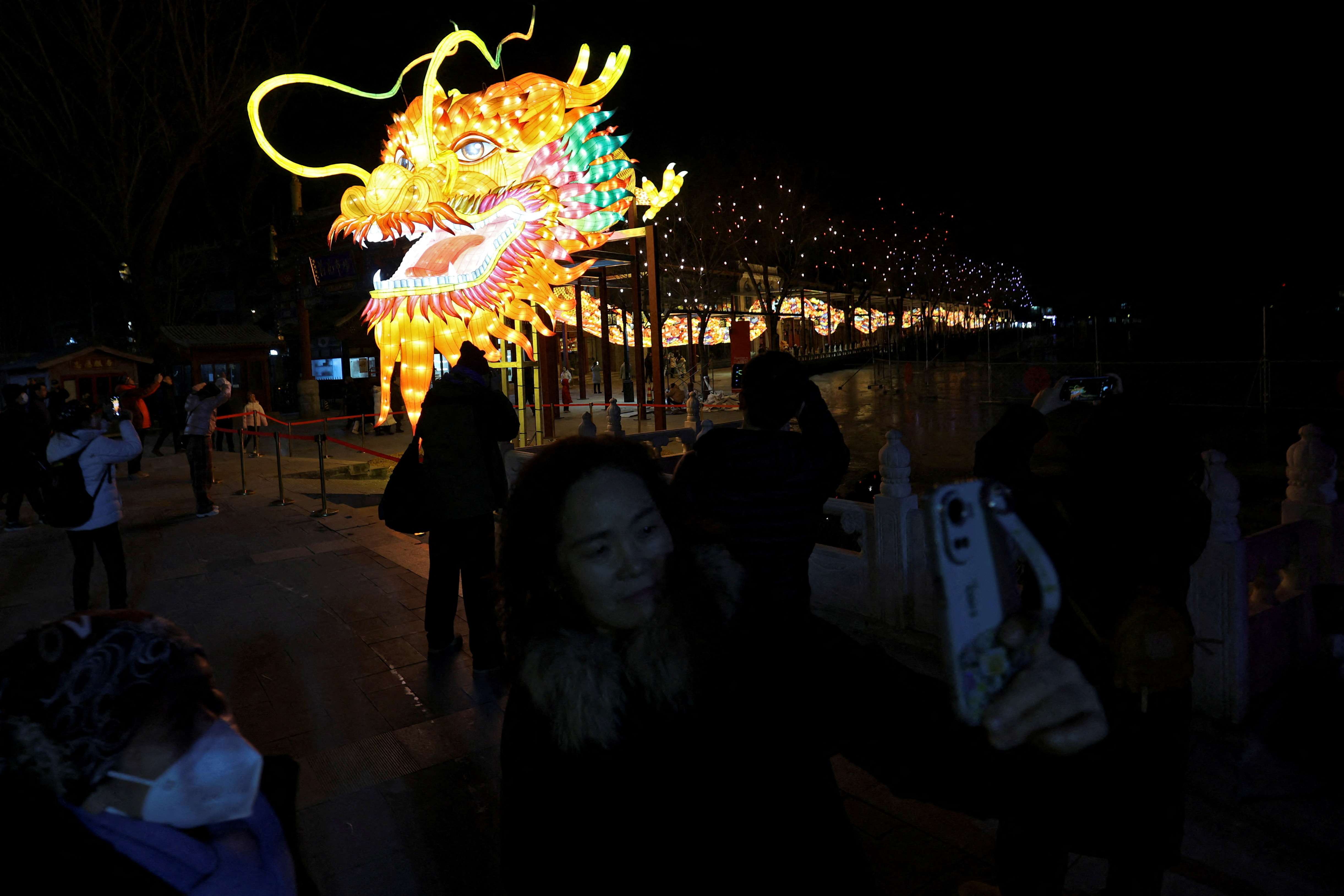 人们在2024年2月7日中国北京农历新年前拍摄了一条龙的装置。路透社/Florence Lo/文件照片香港,2月23日(路透社) - 财经新闻媒体第一财经报道,中国各地医院在龙年出生的婴儿数量增加,这一增长可能会减缓2024年人口下降的趋势,给政策制定者带来喜悦。