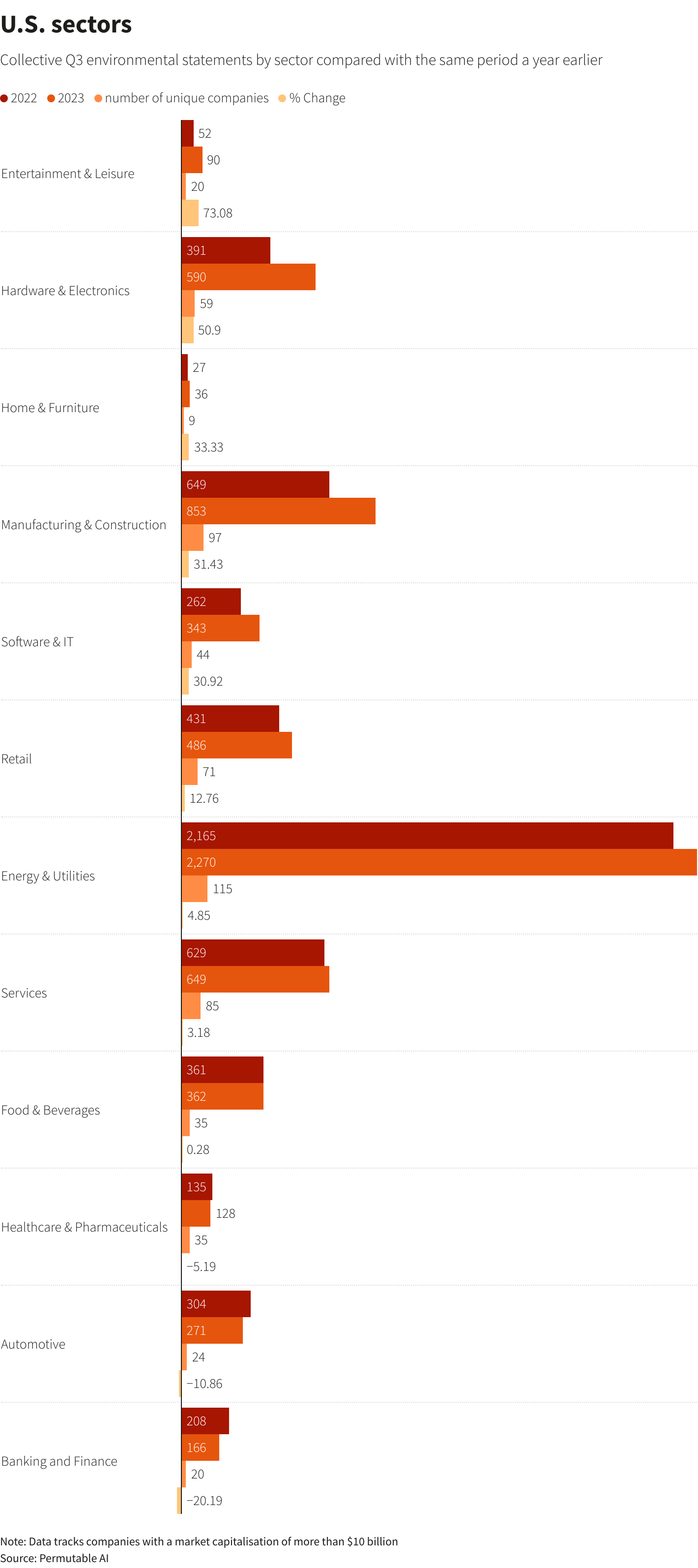 根据Permutable的数据,在美国,包括零售和食品饮料在内的行业的ESG公告数量增加,因为一些消费者愿意为环保和社会友好的产品支付更高的价格。