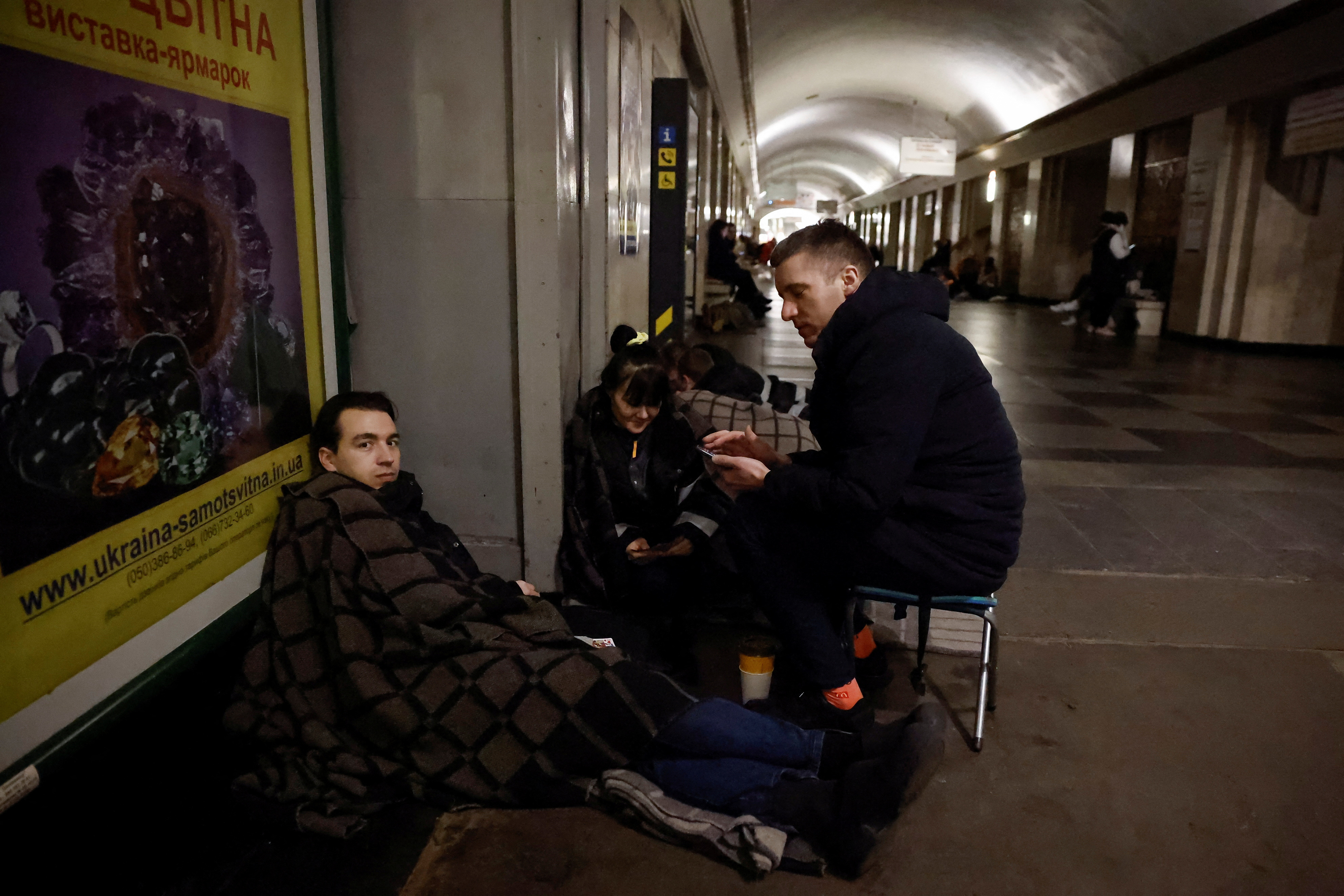 第1张图片,人们在俄罗斯对乌克兰进行的袭击中,躲在基辅的地铁站避难,2024年3月24日,乌克兰。路透社/托马斯·彼得
