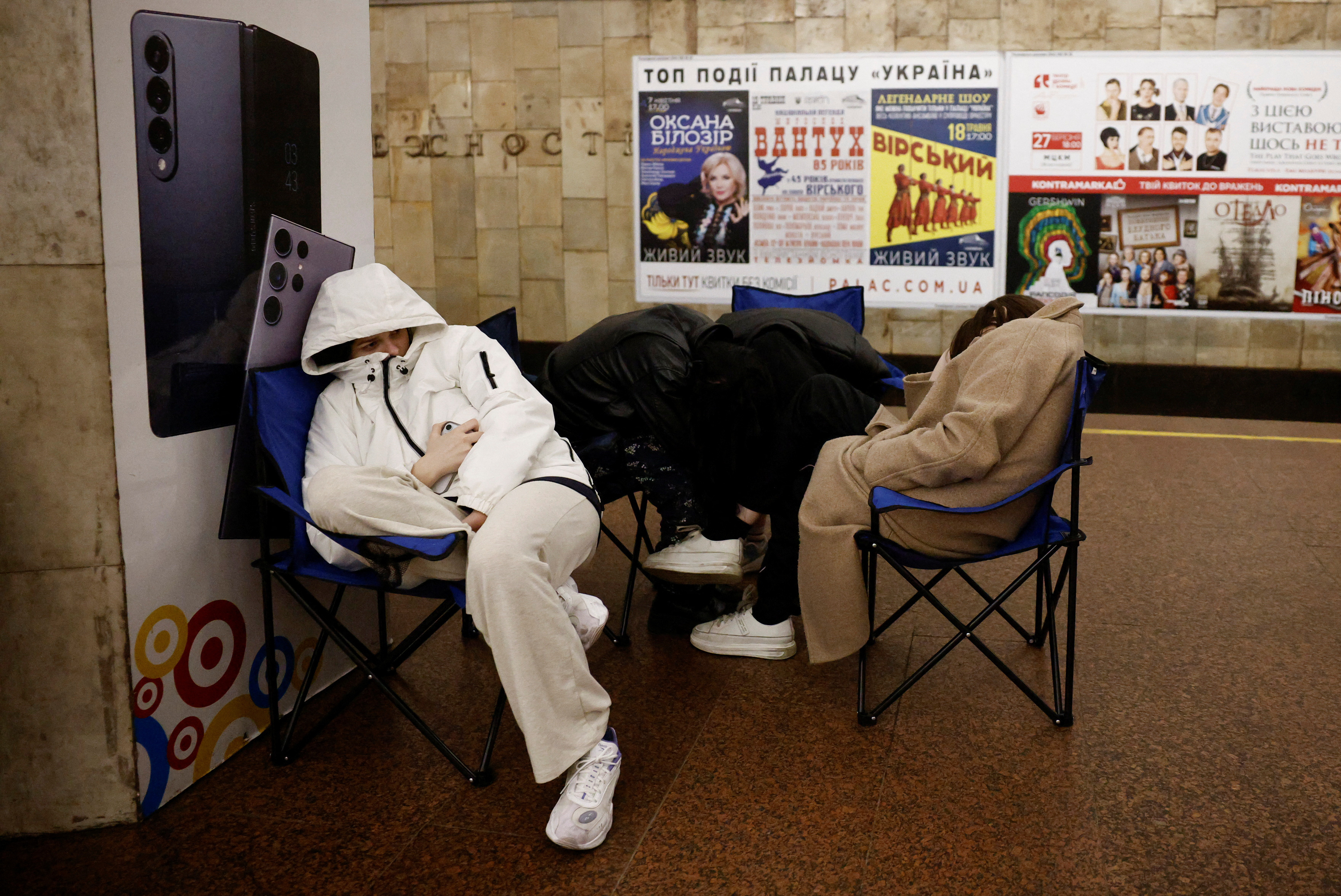 第1张图片,人们在俄罗斯对乌克兰进行的袭击中,躲在基辅的地铁站避难,2024年3月24日,乌克兰。路透社/托马斯·彼得