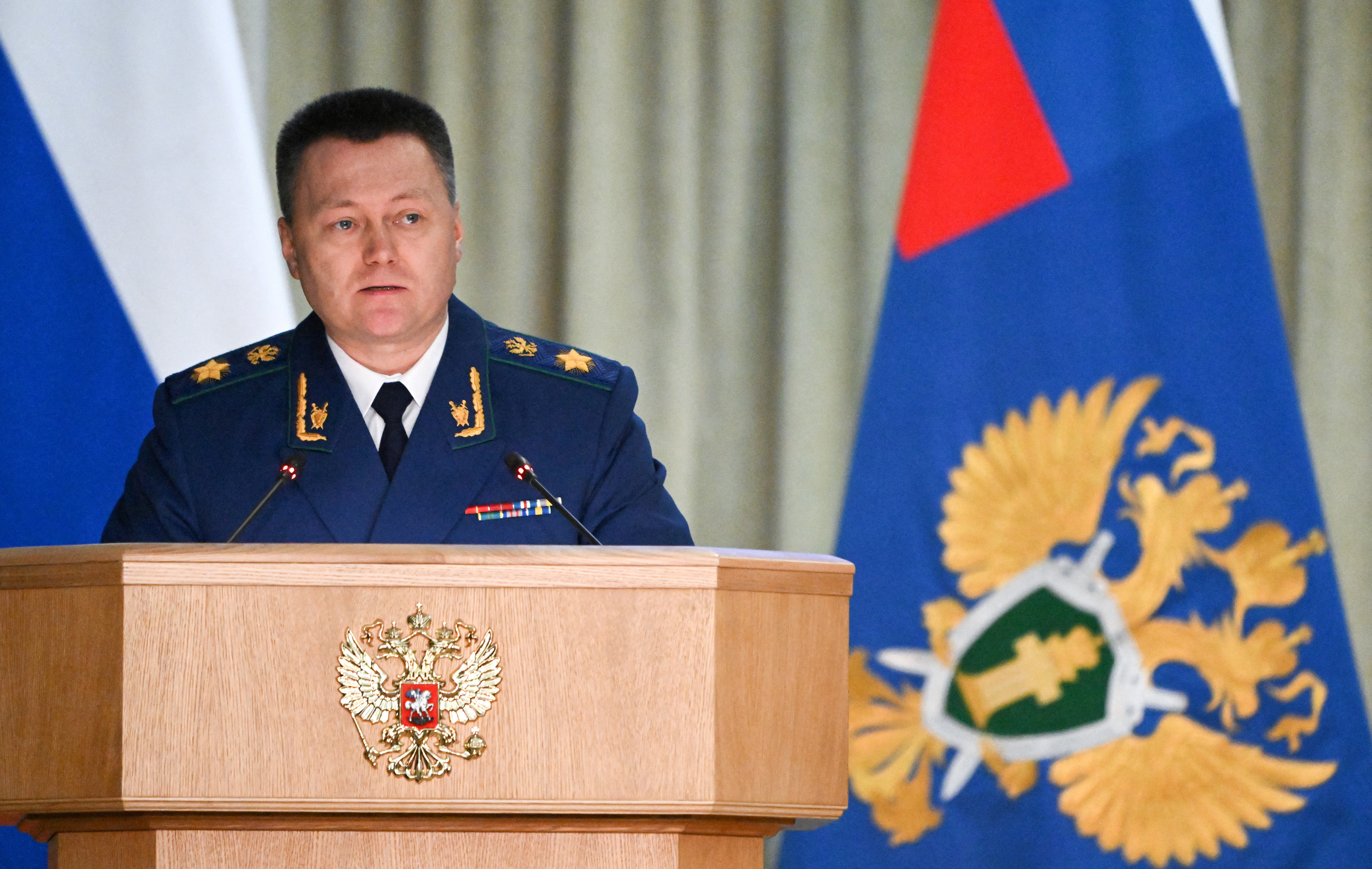 第1项2项俄罗斯总检察长伊戈尔·克拉斯诺夫在莫斯科举行的办公室同事会上发表讲话,2024年3月26日。斯普特尼克/谢尔盖·古涅夫/路透社摄