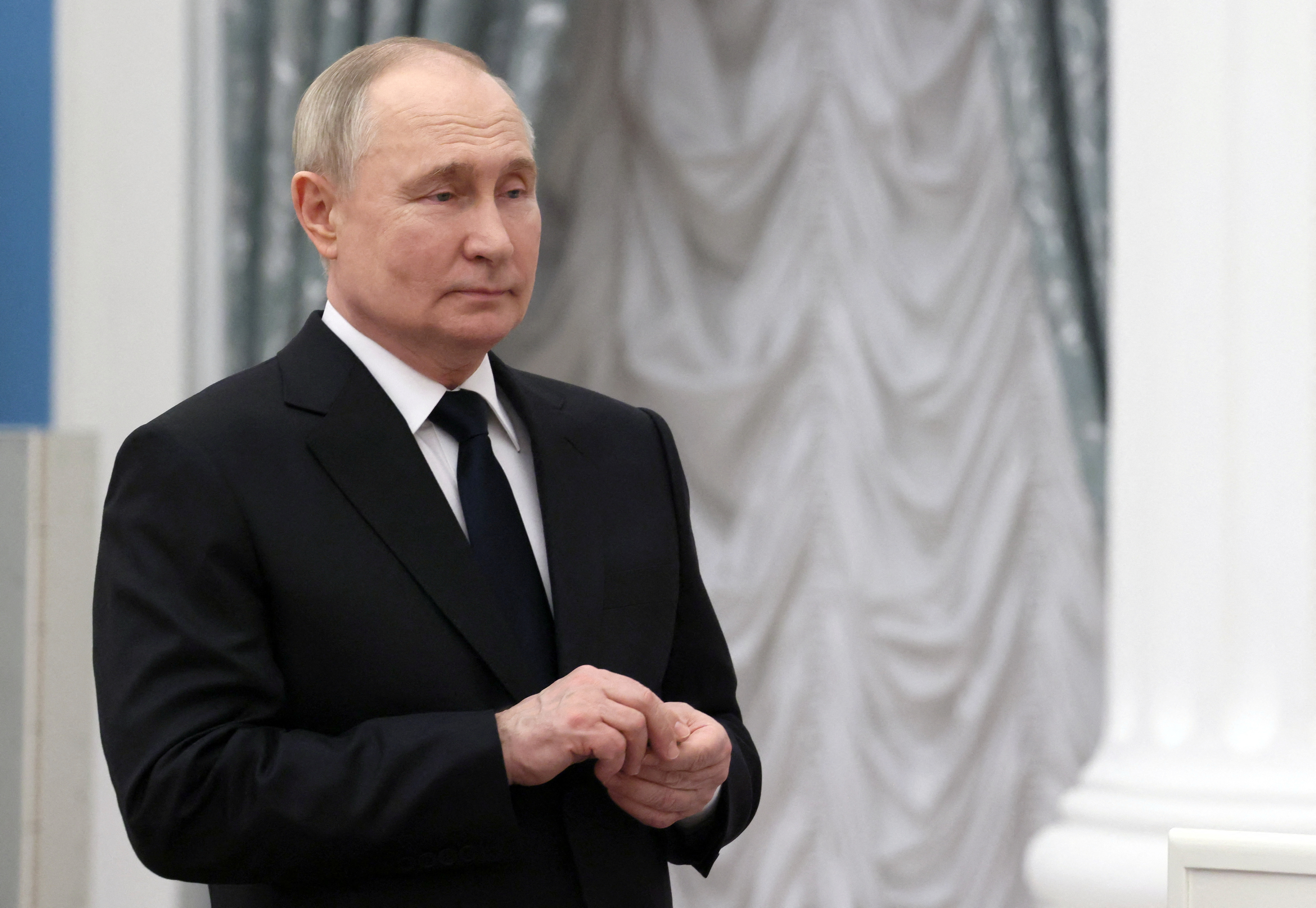 第1/2项 俄罗斯总统弗拉基米尔·普京出席在莫斯科颁发文学和艺术奖给年轻文化人的仪式,2024年3月26日。斯普特尼克/米哈伊尔·梅策尔/泳池通过路透社/文件照片