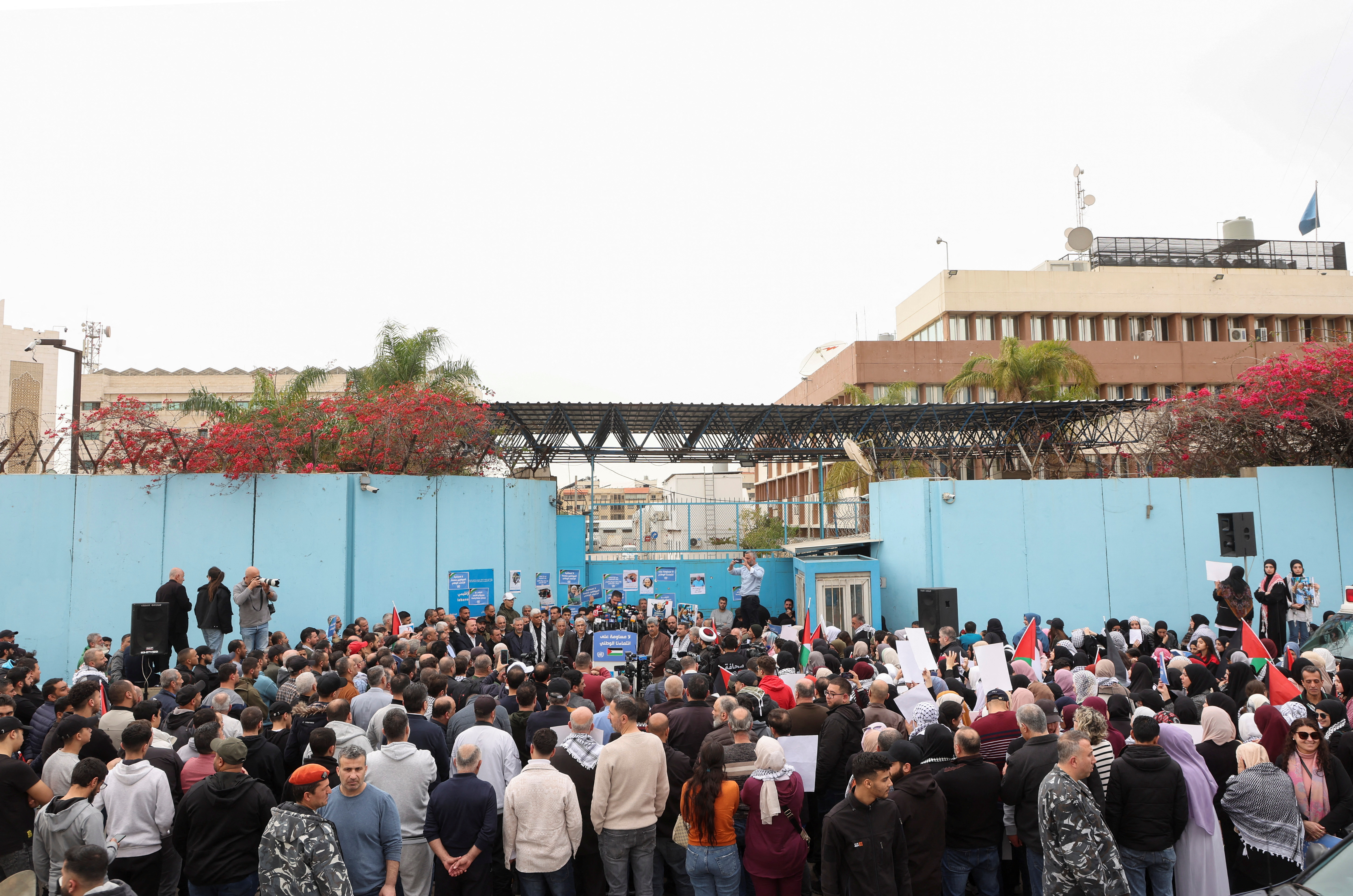 示威者在联合国巴勒斯坦难民机构办公室外举行抗议活动,因该机构因可能违反员工行为规定而将一名员工停职,摄于2024年3月27日,贝鲁特… 阅读更多贝鲁特,3月27日(路透社)- 周三,数十人在联合国巴勒斯坦难民机构贝鲁特办公室外抗议,因该机构因可能违反员工行为规定而将一名员工停职。