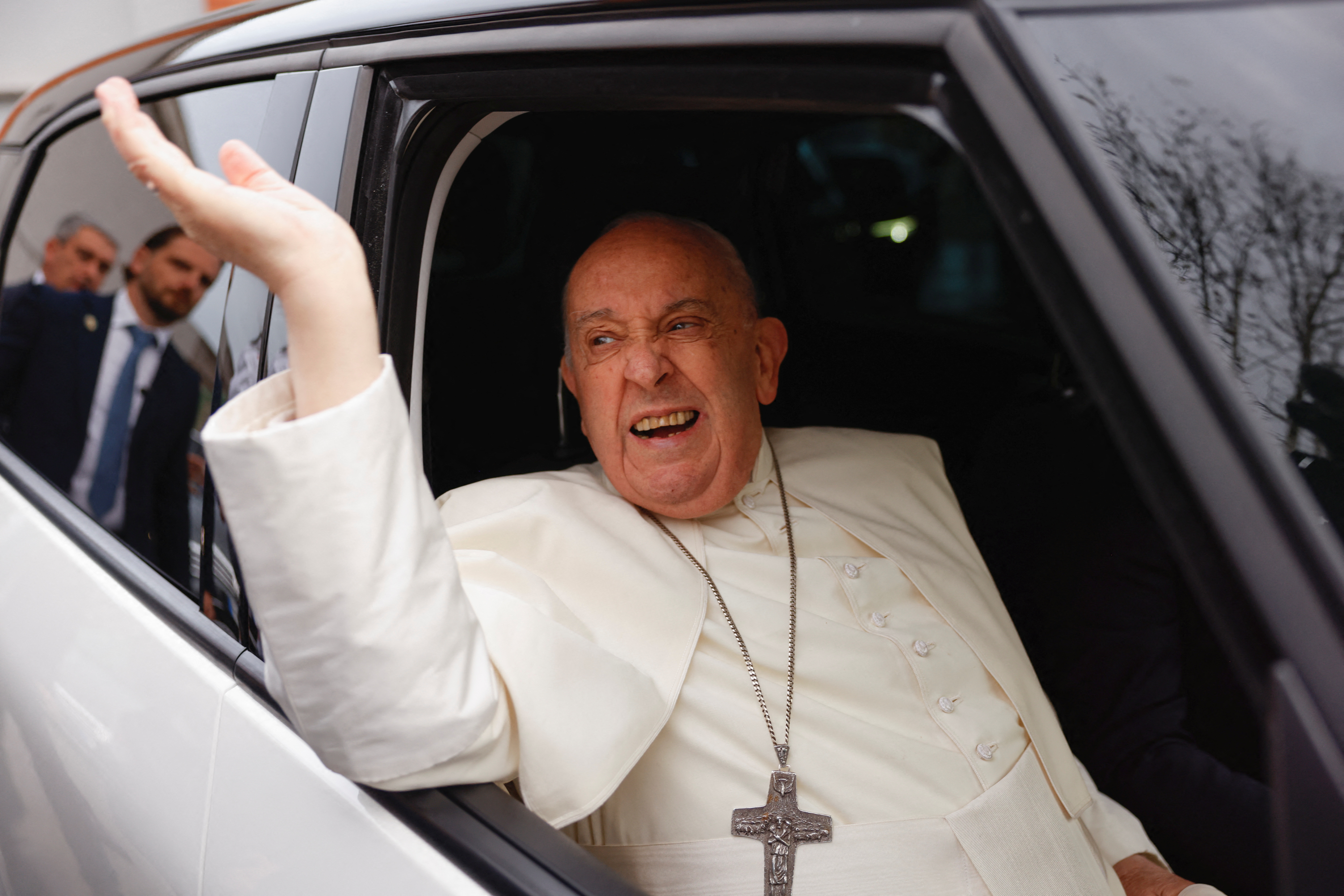 最近因患支气管炎和流感而感到疲劳,弗朗西斯缩减了讲话活动,但看起来状态良好。当他到达监狱时,一名助手推着他的轮椅穿过人群,许多囚犯冲上前去触摸他。## “一缕阳光”