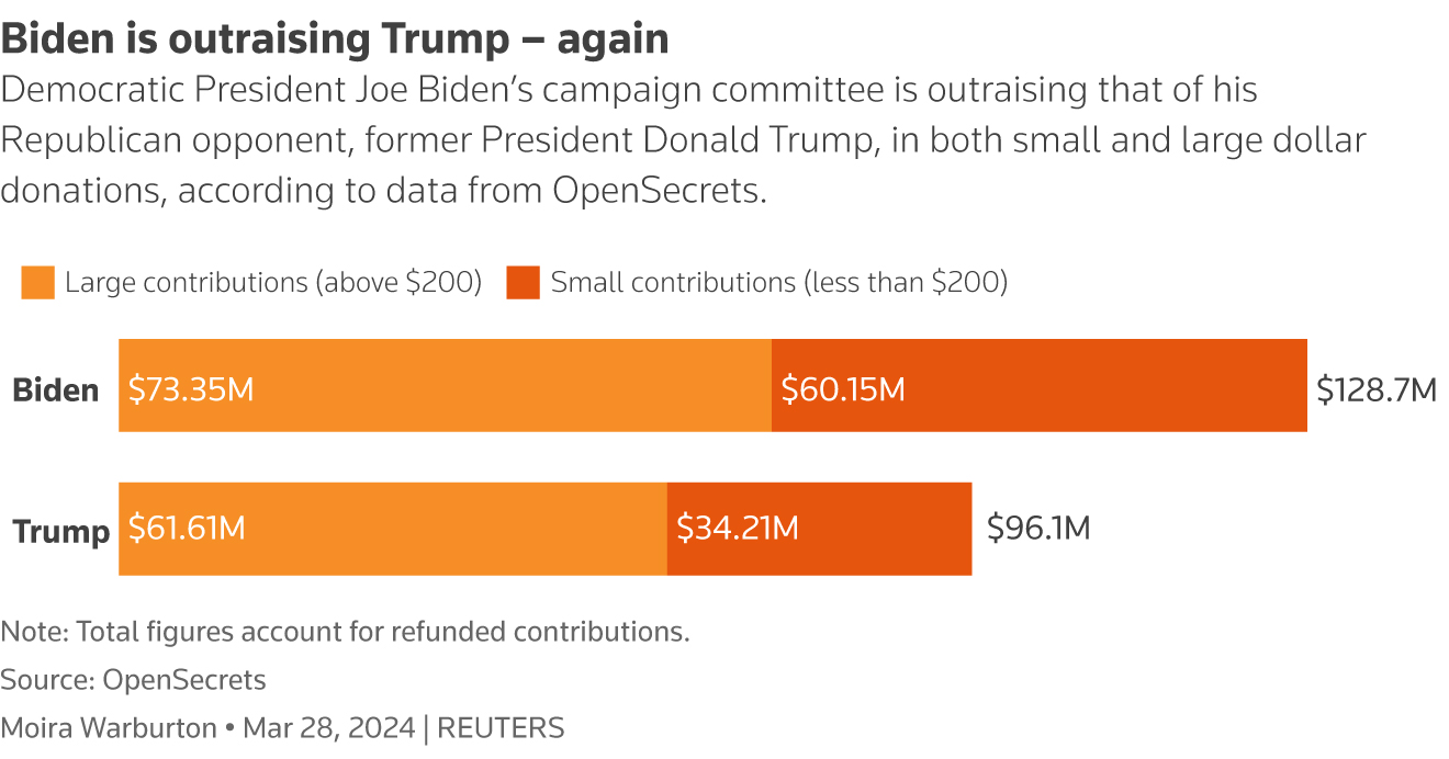 特朗普无法与拜登2024年的筹款相匹配,共和党竞选团队表示 | 路透社