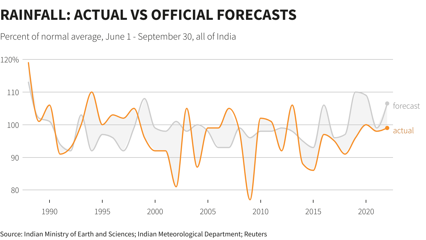 印度预测今年季风雨量将高于平均水平,有助于提高农作物产量和经济发展 | 路透社