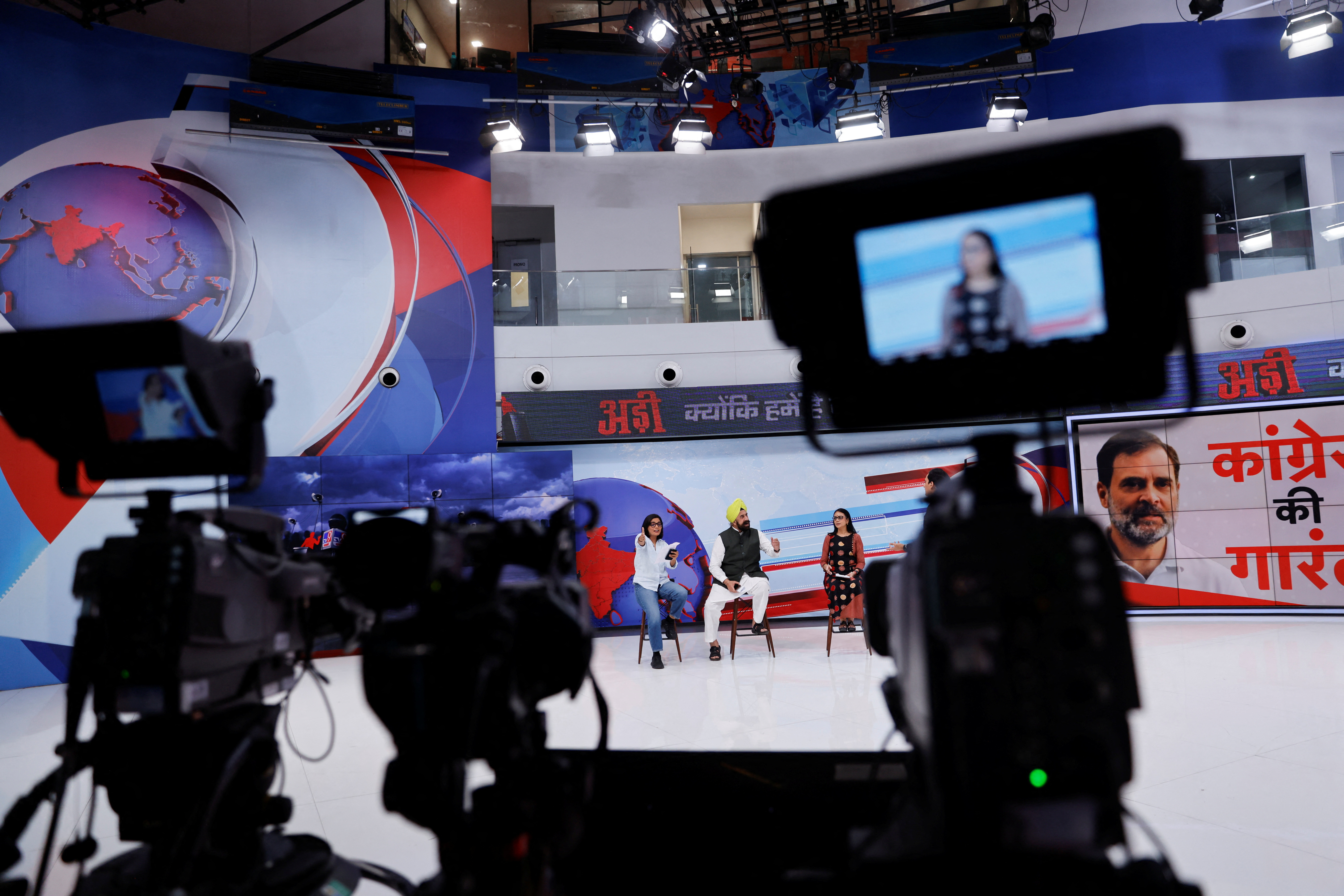 Neha Singh Rathore,27岁,民间歌手和社交媒体内容创作者,在印度诺伊达的一家全国电视新闻网络的工作室内,参加辩论并被要求担任小组成员时做出反应,2024年4月5日。路透社/Anushree Fadnavis 新德里,4月18日(路透社)- 随着世界上人口最多的国家迈向于周五开始的一场大选,印度的主流电视频道和大多数报纸几乎没有对印度总理纳伦德拉·莫迪进行任何批判性评价。印度每五年一次的选举通常在其庞大的媒体上引发激烈的辩论和互相攻击。但今年,对莫迪及其印度人民党(BJP)的批评主要集中在线上,其中一些最近几周已经在网上走红。