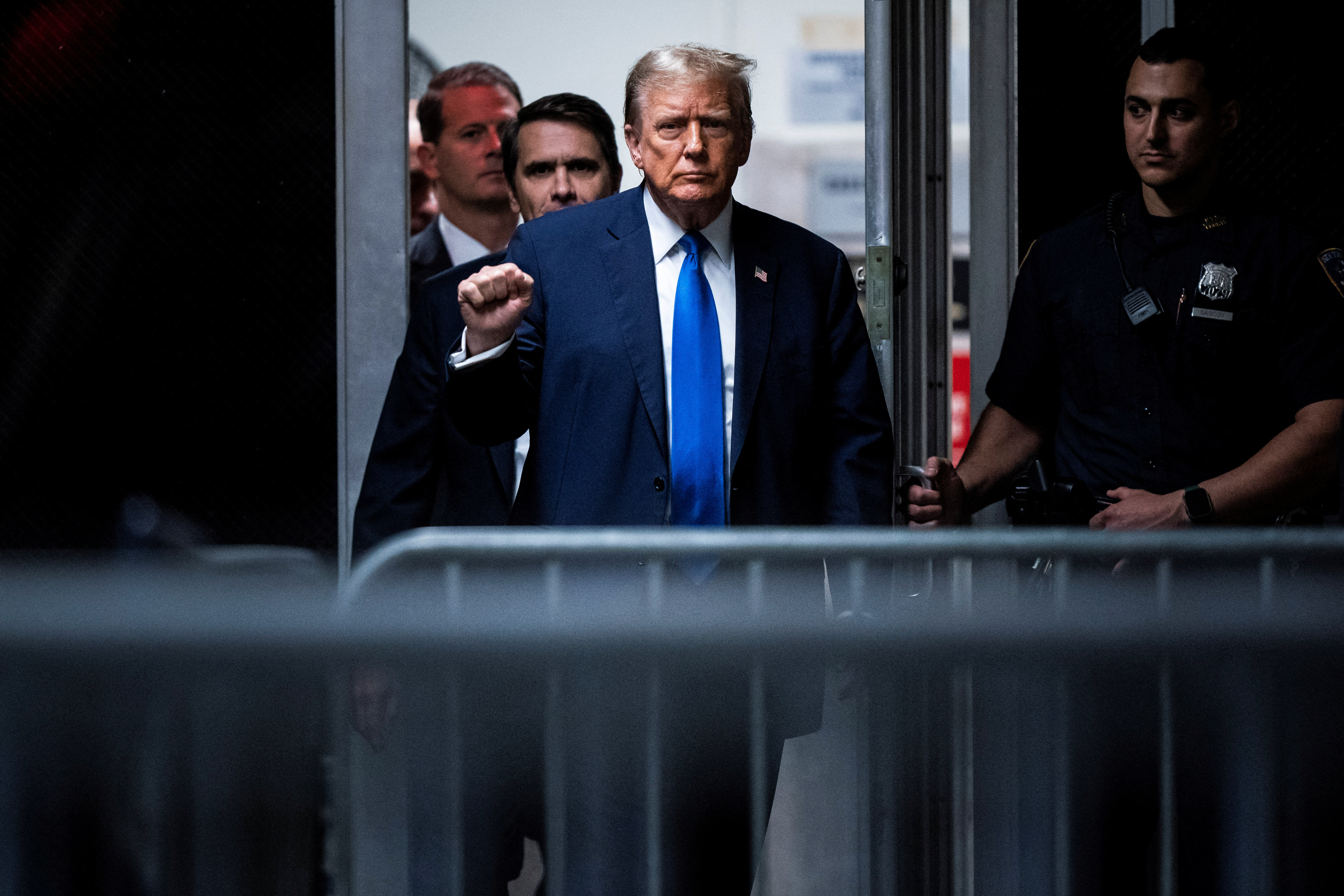 第1项,前美国总统唐纳德·特朗普坐在曼哈顿刑事法庭,审理他涉嫌掩盖付给保持沉默金钱的指控,2024年4月19日,美国纽约市,美国。斯宾塞·普拉特/路透社通过REUTERS