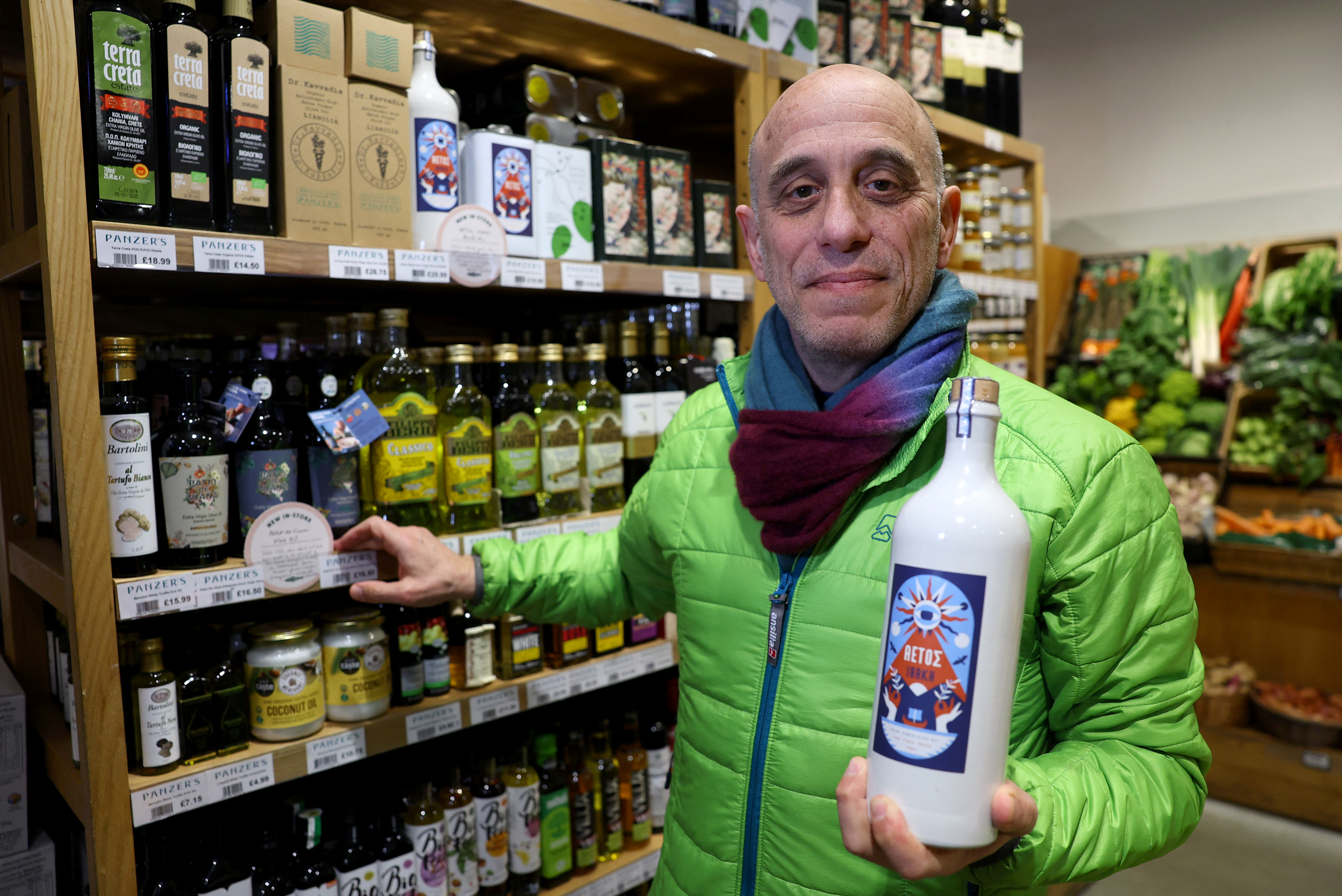 第1项,David Joseph,Panzer’s的所有者,拿着一瓶工匠橄榄油,在伦敦的熟食店和杂货店摆姿势拍摄肖像,2024年3月26日,英国。路透社/Toby Melville/档案照片