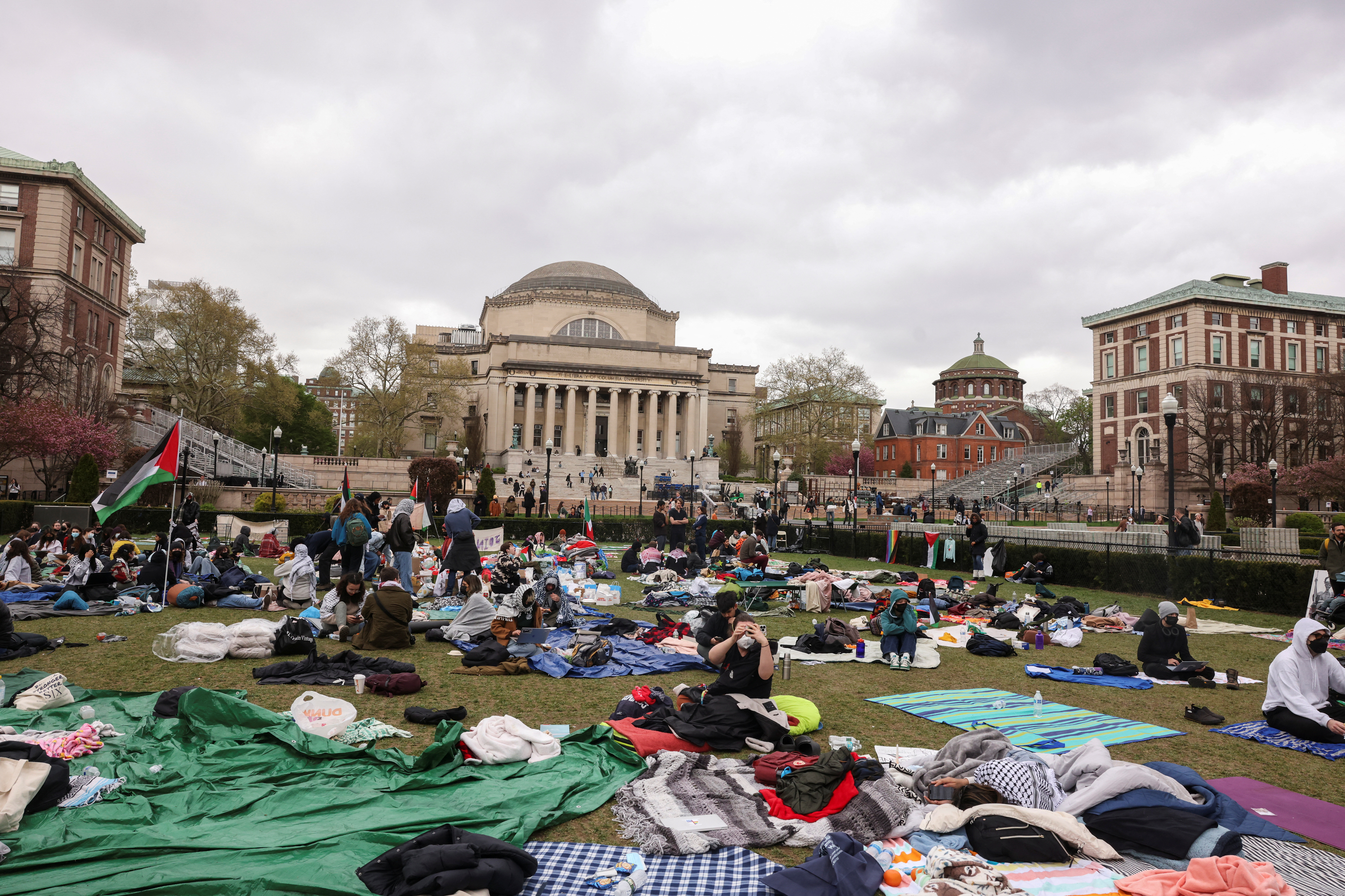学生抗议者在露天草坪上度过了几个晚上睡觉,并重新搭起了帐篷。学生们在露营地组织了穆斯林和犹太教的祈祷,并有些人发表了谴责以色列和犹太复国主义、赞扬巴勒斯坦武装抵抗的演讲。类似的亲巴勒斯坦露营地也在波士顿的埃默森学院和邻近的剑桥的麻省理工学院设立。