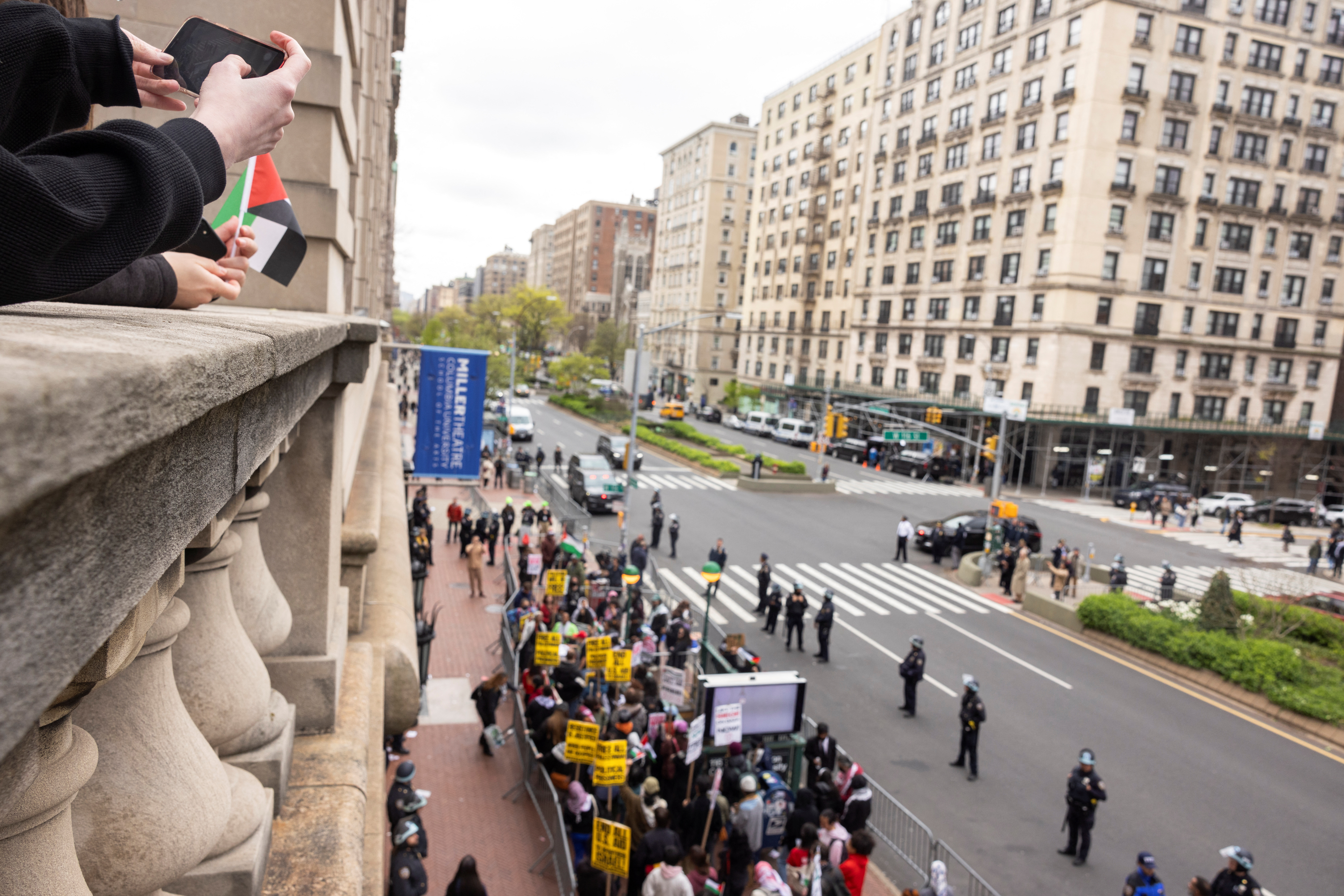 纽约警察局在哥伦比亚大学校园周围繁忙的曼哈顿街道上部署了大量警官,亲巴勒斯坦和亲以色列团体之间发生了愤怒的对抗。