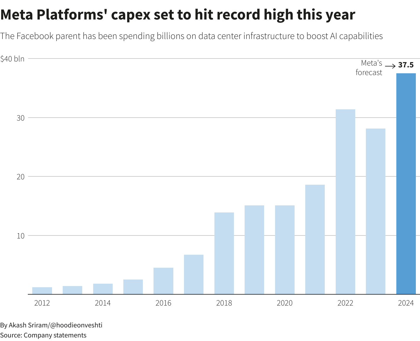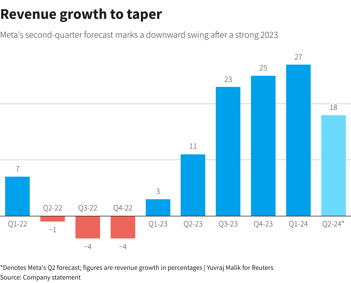 Meta股价因人工智能支出增加和收入预测疲软而下跌 | 路透社