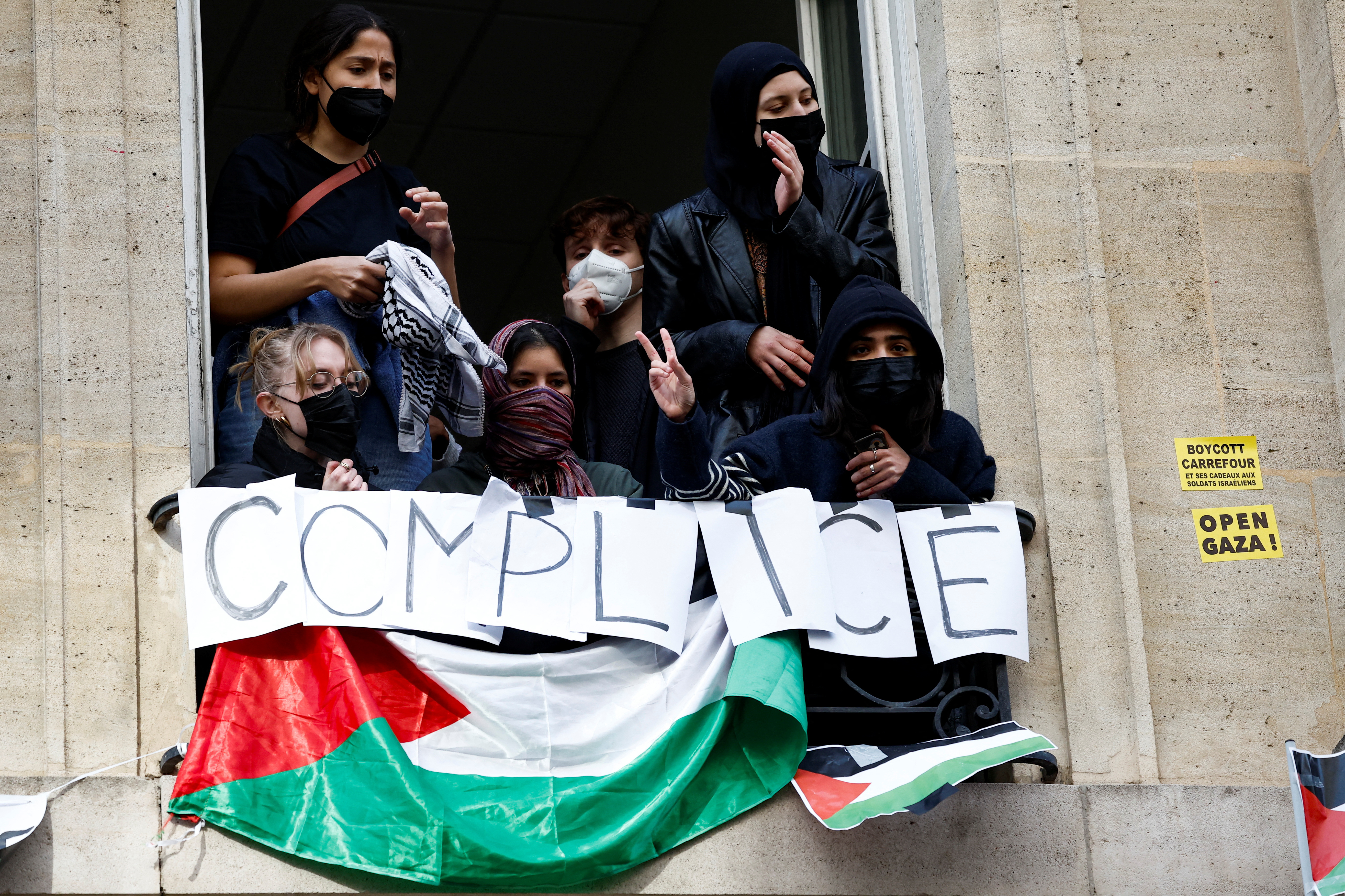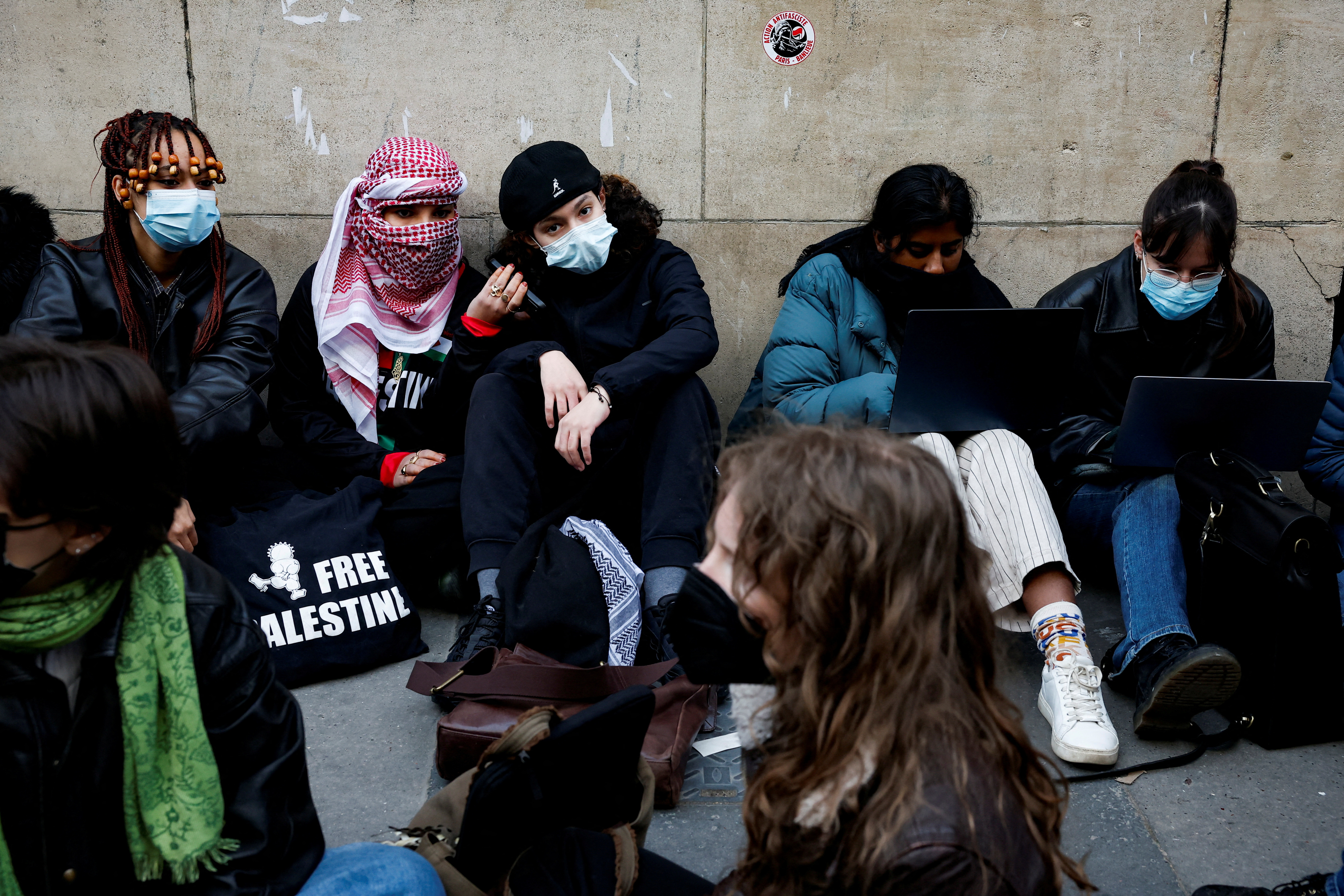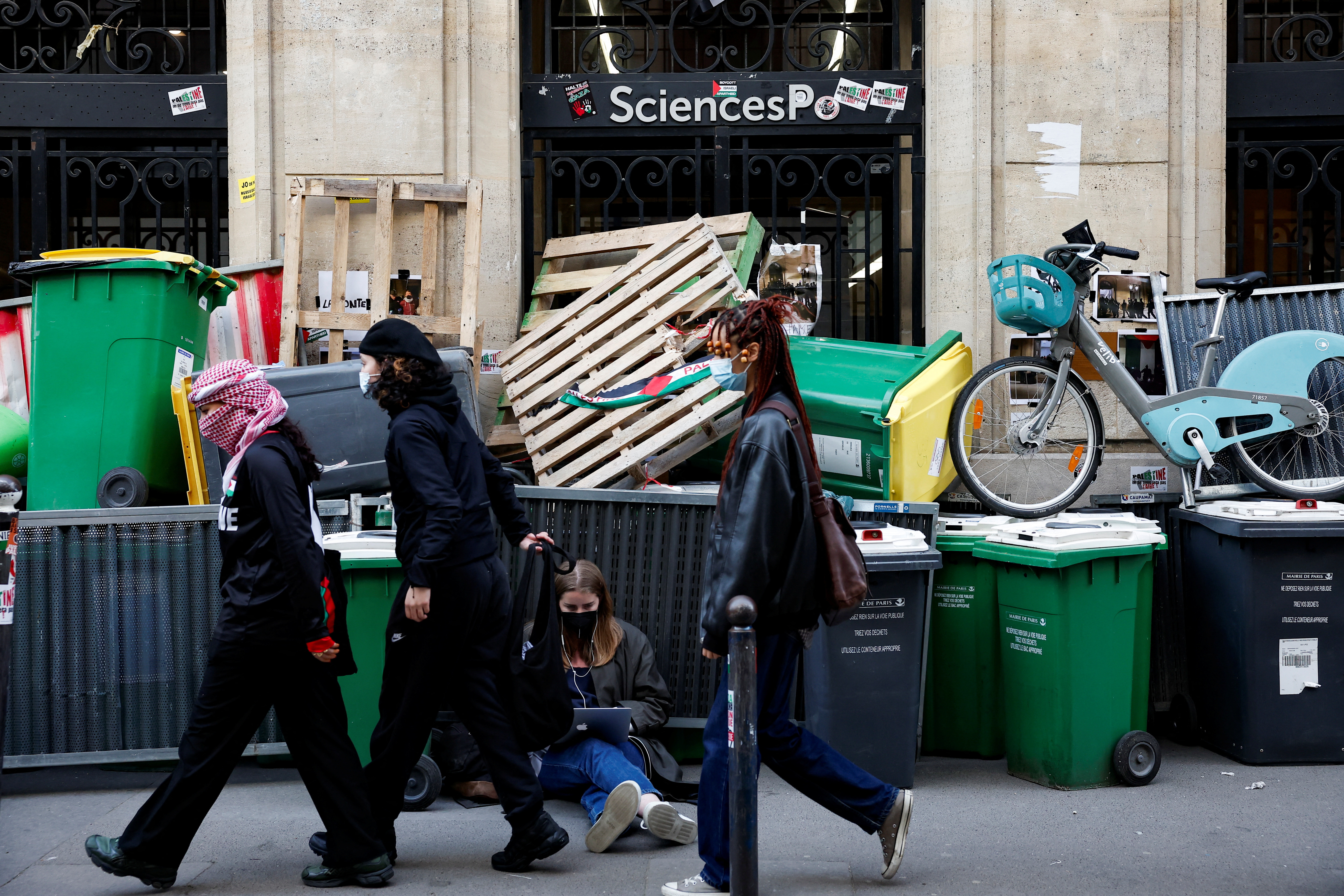 学生封锁巴黎政治学院抗议加沙战争 | 路透社