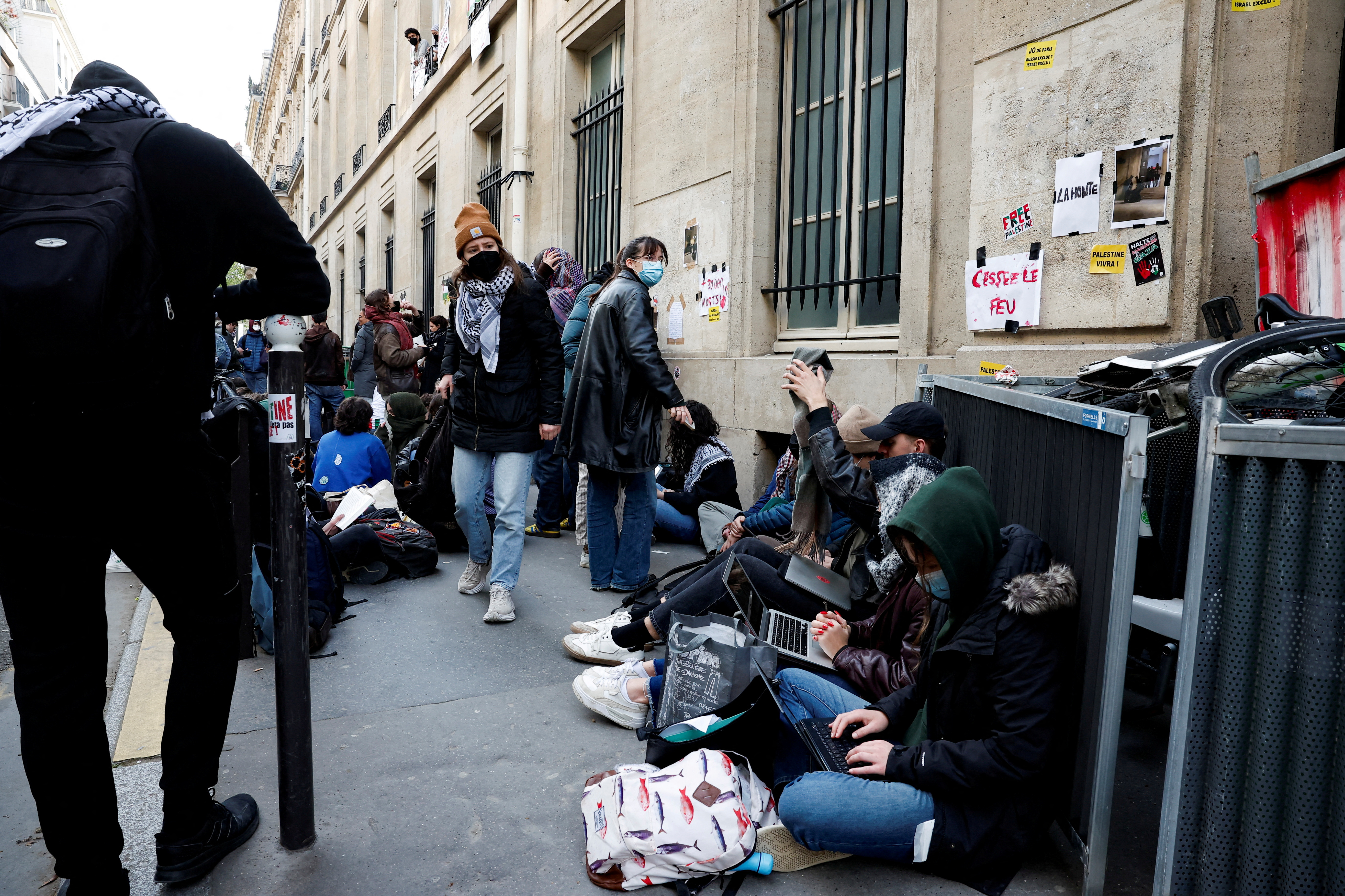 学生封锁巴黎政治学院抗议加沙战争 | 路透社