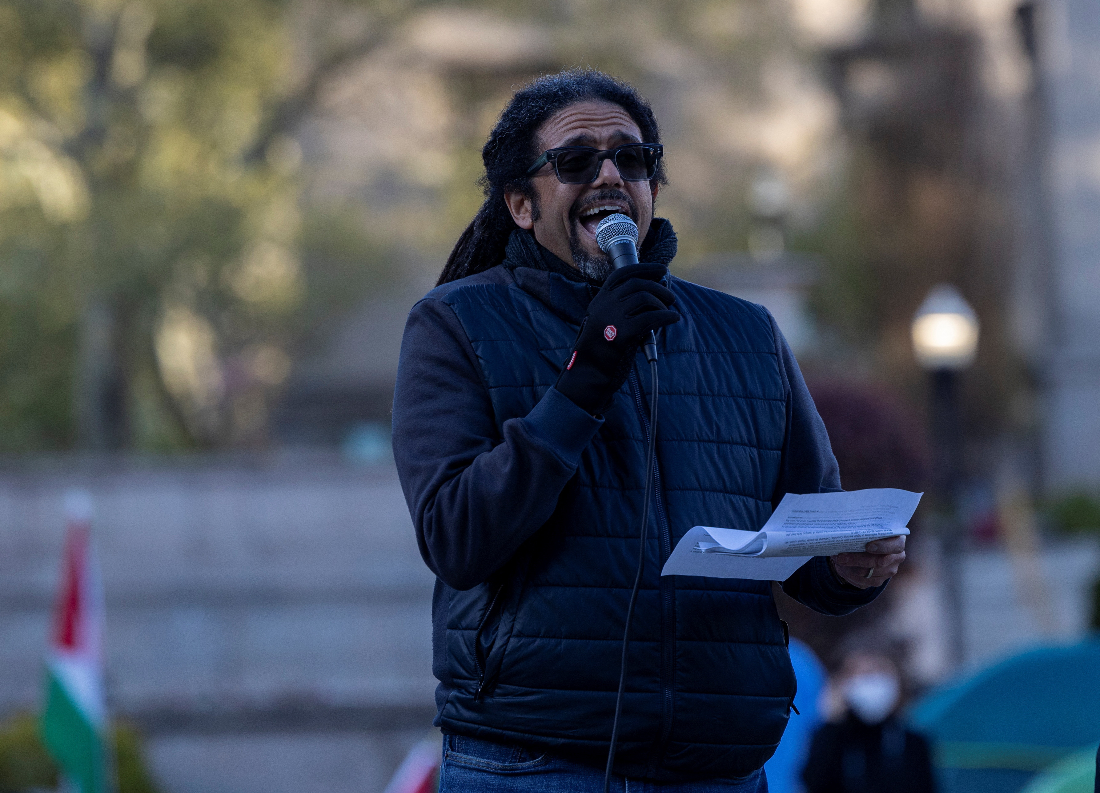 学生抗议者在4月17日黎明时分未经学校许可搭起了营地,要求哥伦比亚大学撤资武器制造商和其他支持以色列政府和军队的公司。这场抗议活动是与数十个其他学生团体联合举行的,由哥伦比亚大学巴勒斯坦正义学生会和犹太和平之声分会领导,这两个组织在11月因早前未经授权的亲巴勒斯坦抗议活动而被学校停职。