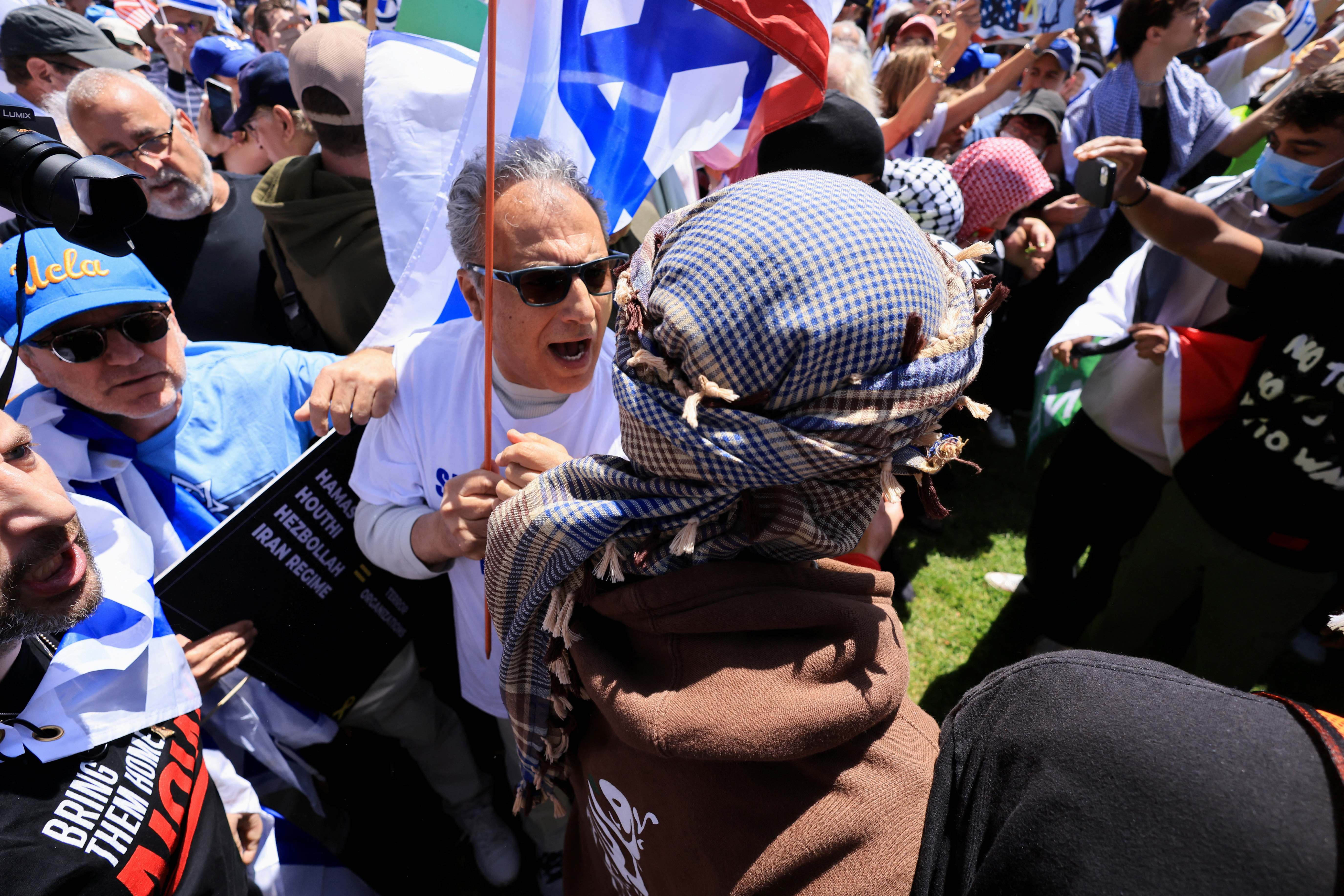 加州大学洛杉矶分校的亲巴勒斯坦抗议者与支持以色列的人发生冲突| 路透社