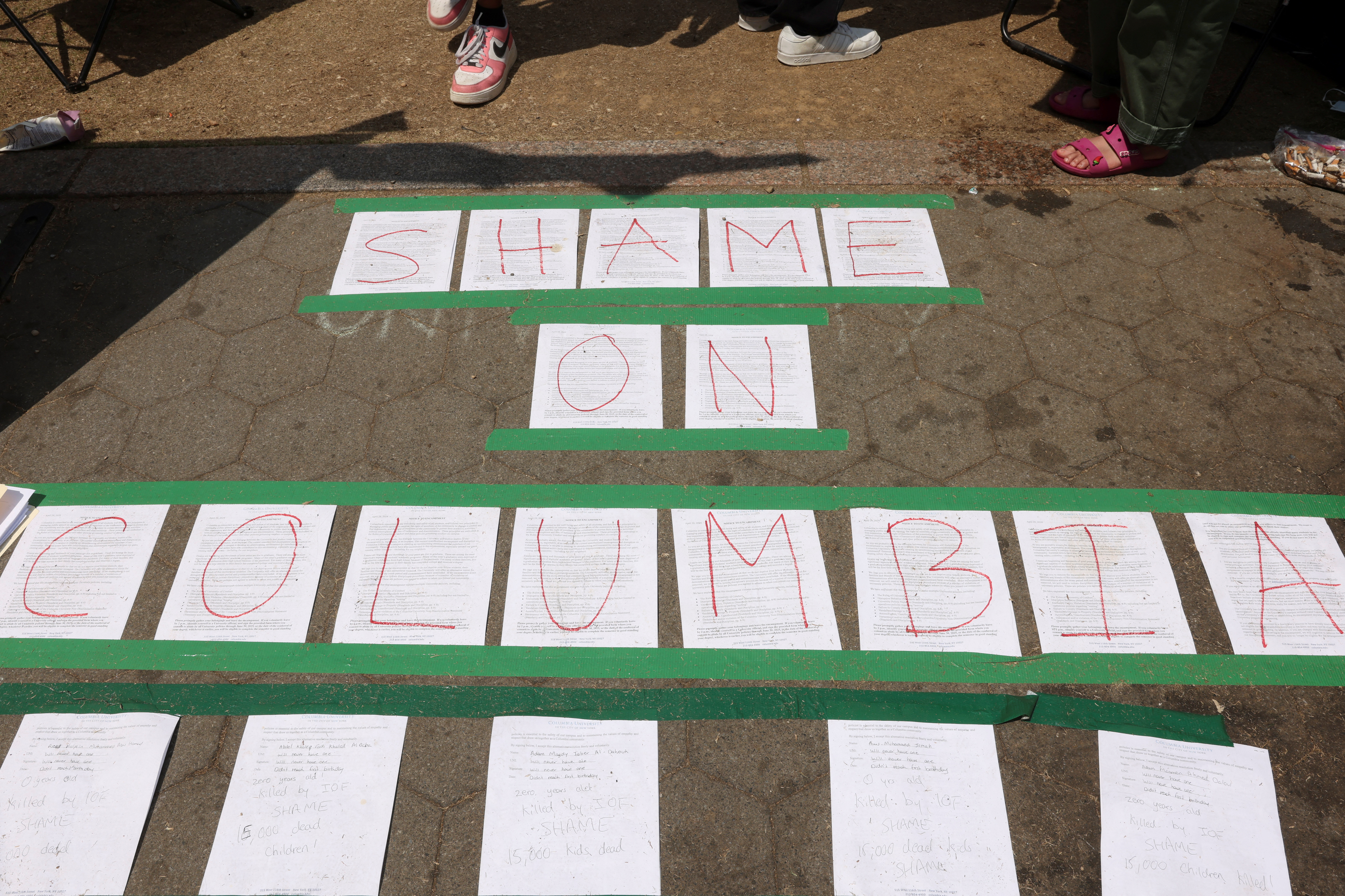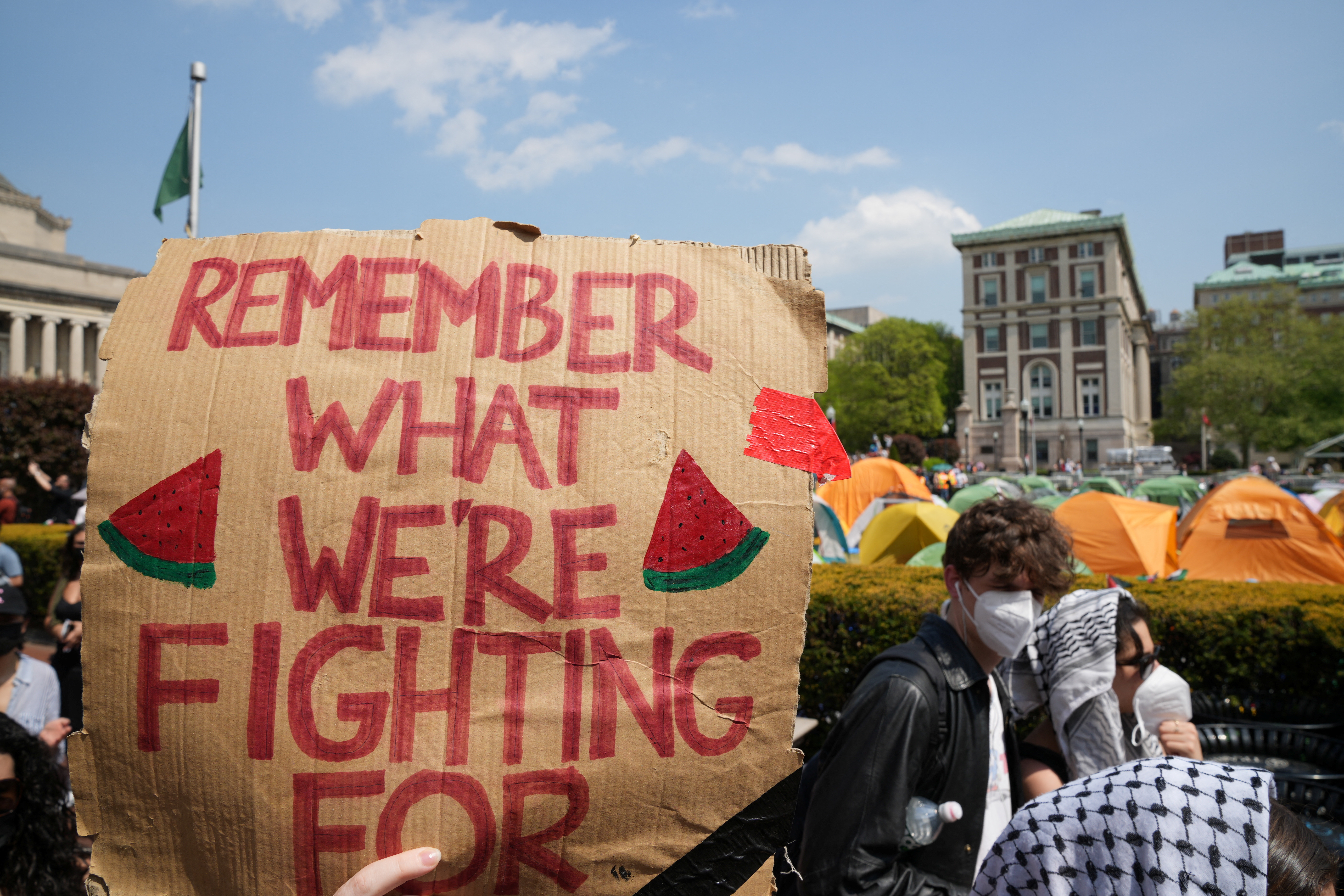 抗议者发誓要保持他们在曼哈顿校园的露营,直到哥伦比亚满足三个要求:撤资、哥伦比亚财务透明和对因参与抗议活动而受到处分的学生和教职员工的特赦。
