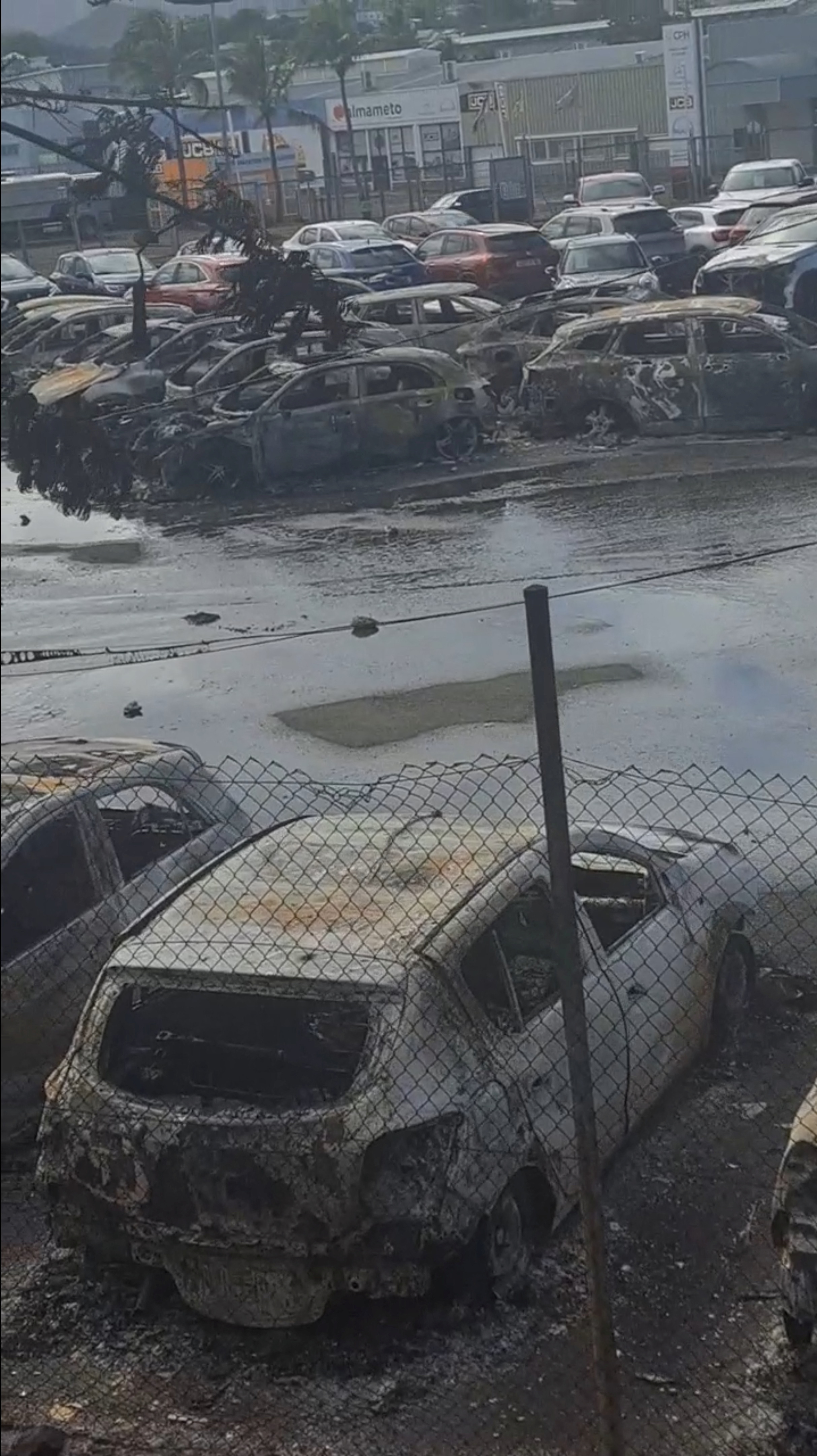 项目 1 共 2 一座受损建筑在抗议者抗议计划允许更多人参与法国统治的领土的地方选举时被看到,土著卡纳克抗议者对此表示拒绝,地点在新喀喇多尼亚的努美阿,2024年5月15日,这张图片来自社交媒体。Lilou Garrido Navarro Kherachi/通过路透社/档案照片