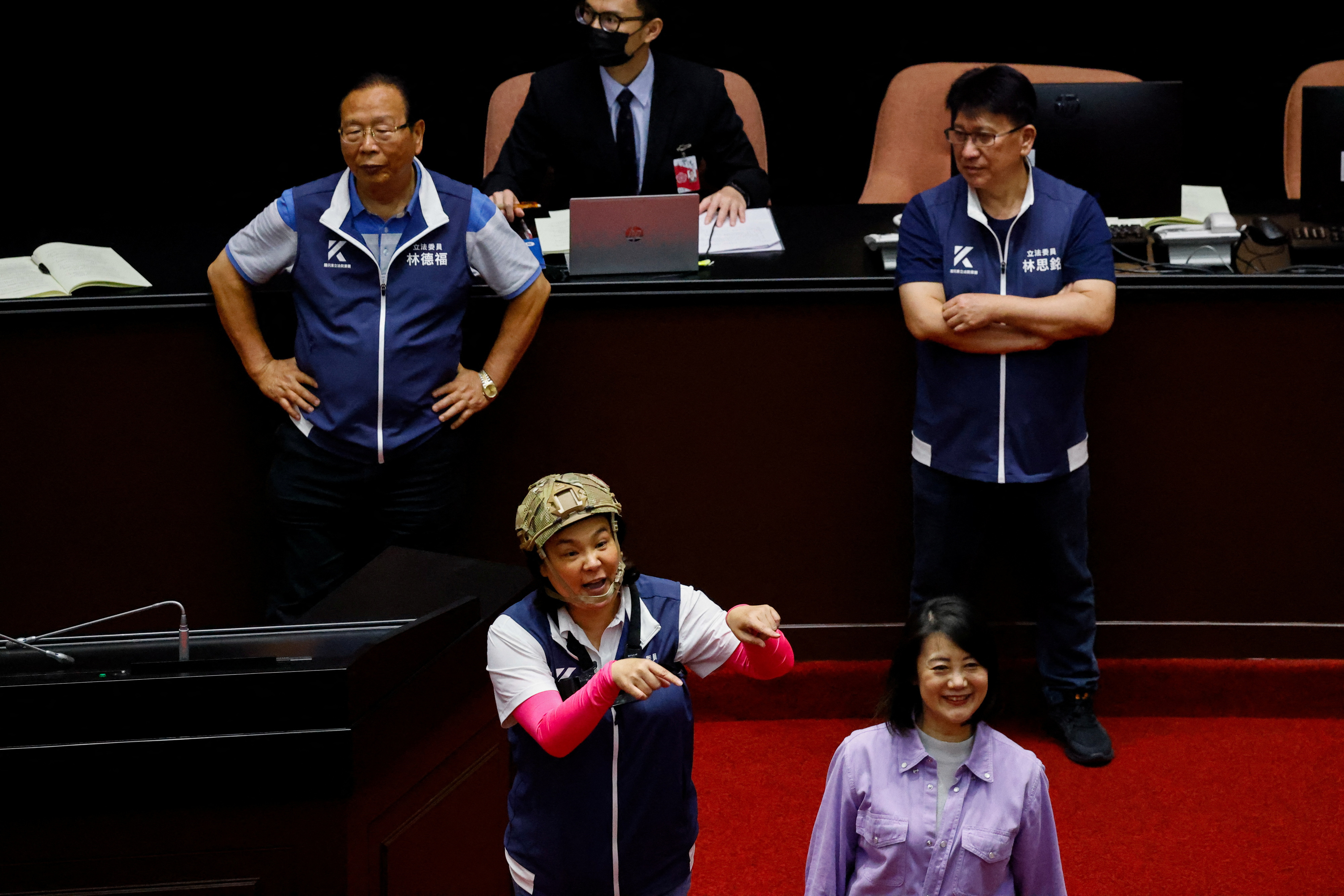 “民进党不希望这个通过,因为他们一直习惯于垄断权力,”她告诉路透社,头戴军用风格的头盔。