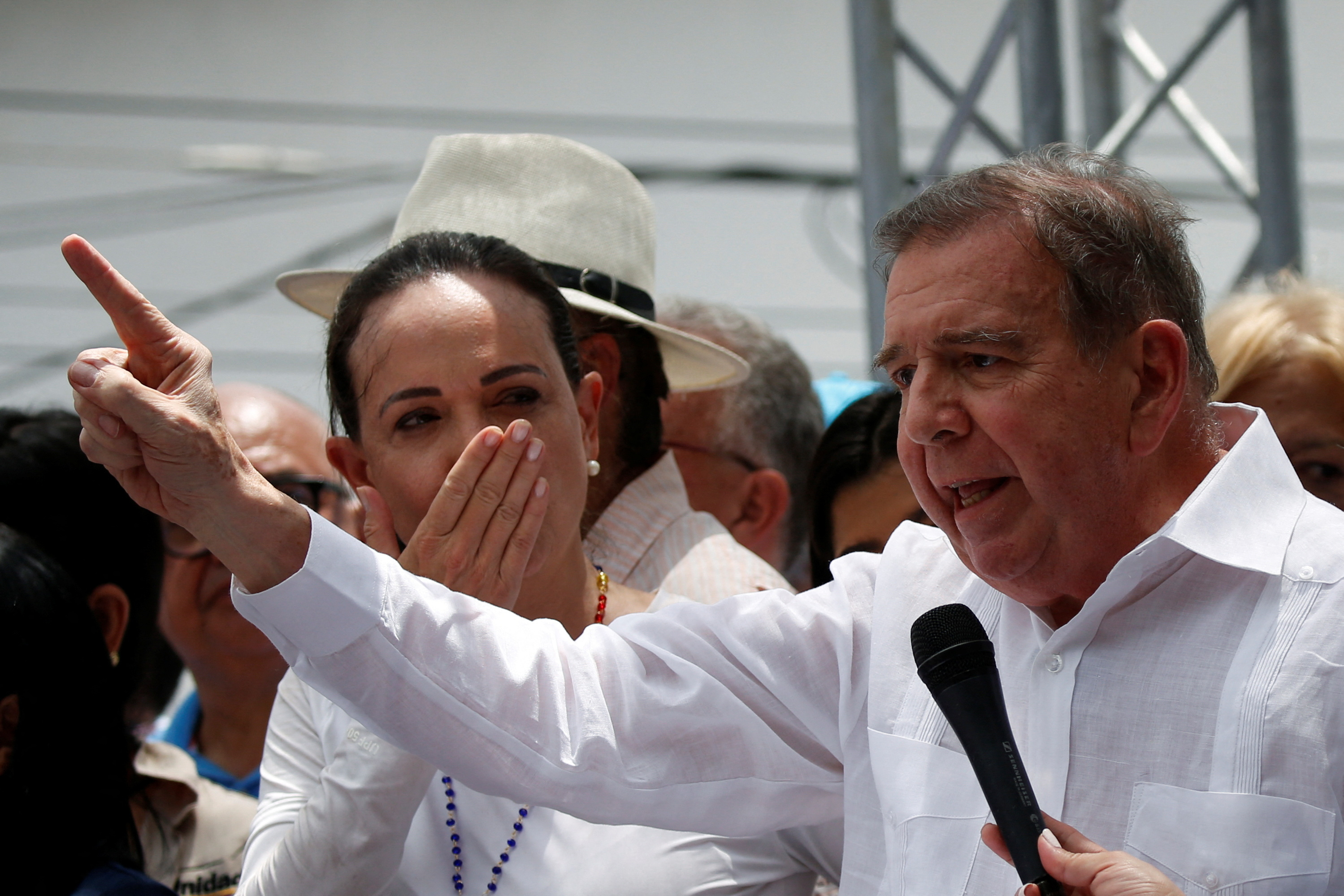 第1项,委内瑞拉反对派总统候选人埃德蒙多·冈萨雷斯在委内瑞拉阿拉瓜州拉维多利亚的集会上向支持者讲话,2024年5月18日。路透社/莱昂纳多·费尔南德斯·维洛利亚