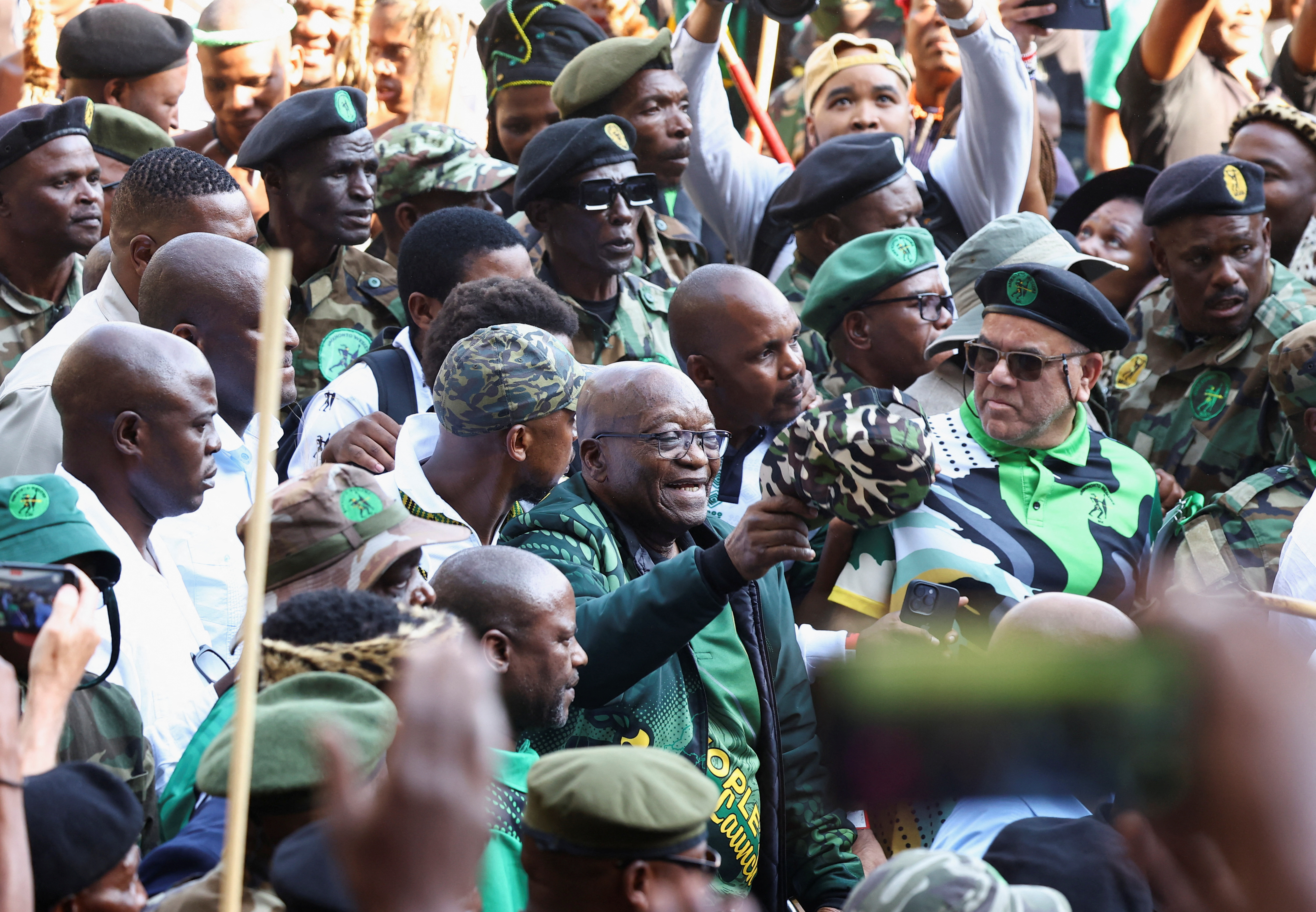 第1项5前南非总统雅各布·祖马在南非索韦托的一次集会上,于2024年5月18日发表了他新政党uMkhonto we Sizwe的选举宣言,该政党将在5月29日的大选前夕争取议会多数席位。路透社/Siphiwe Sibeko