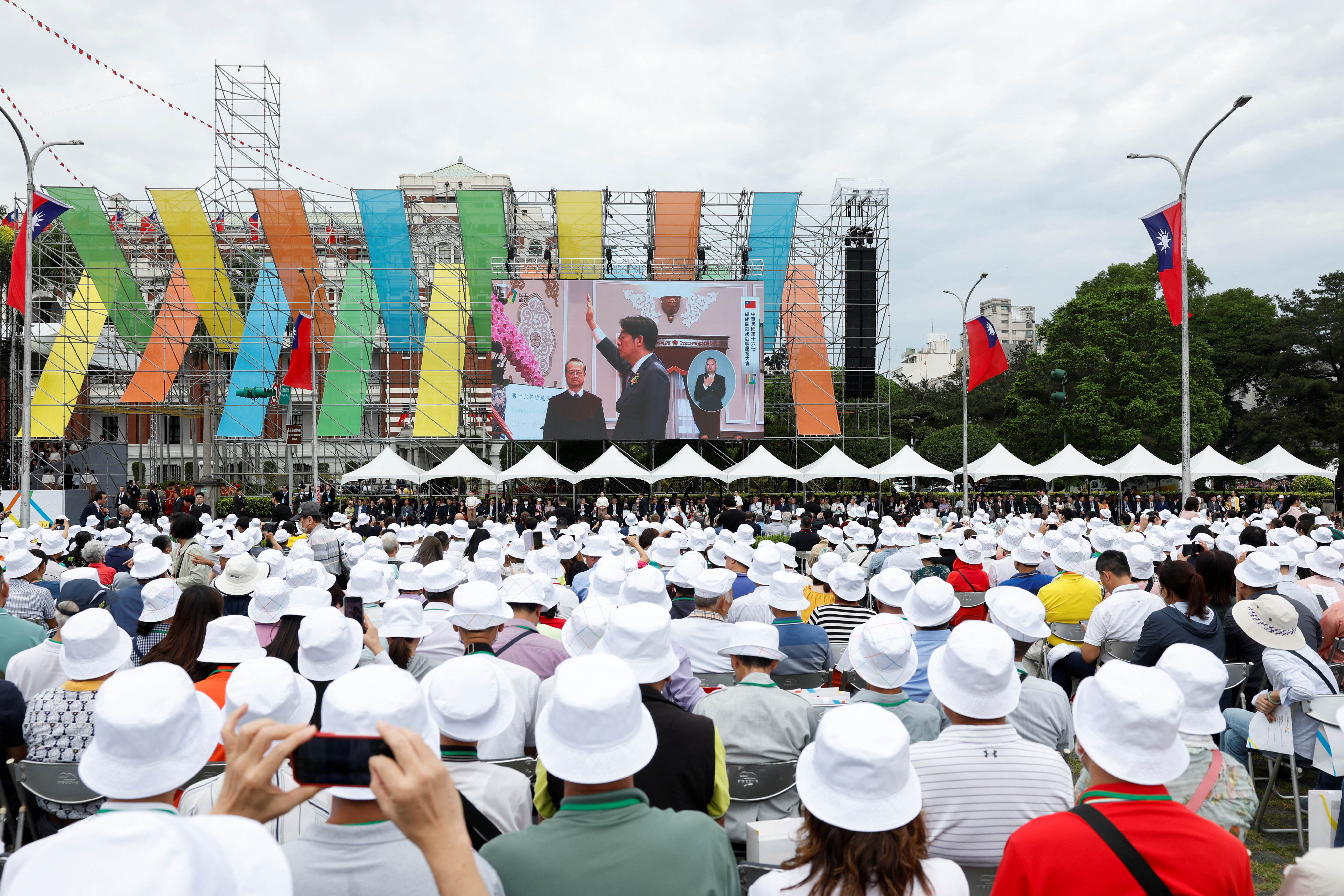 赖清德在台北市中心日据时代总统府外的人群中发表讲话,再次呼吁与中国进行对话,中国视这个自豪的民主岛屿为自己的领土,并从未放弃使用武力将其纳入北京控制之下。