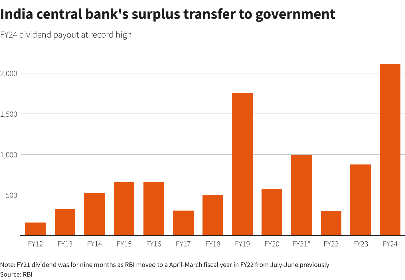印度央行向政府支付创纪录的股息可能会减少财政赤字 | 路透社