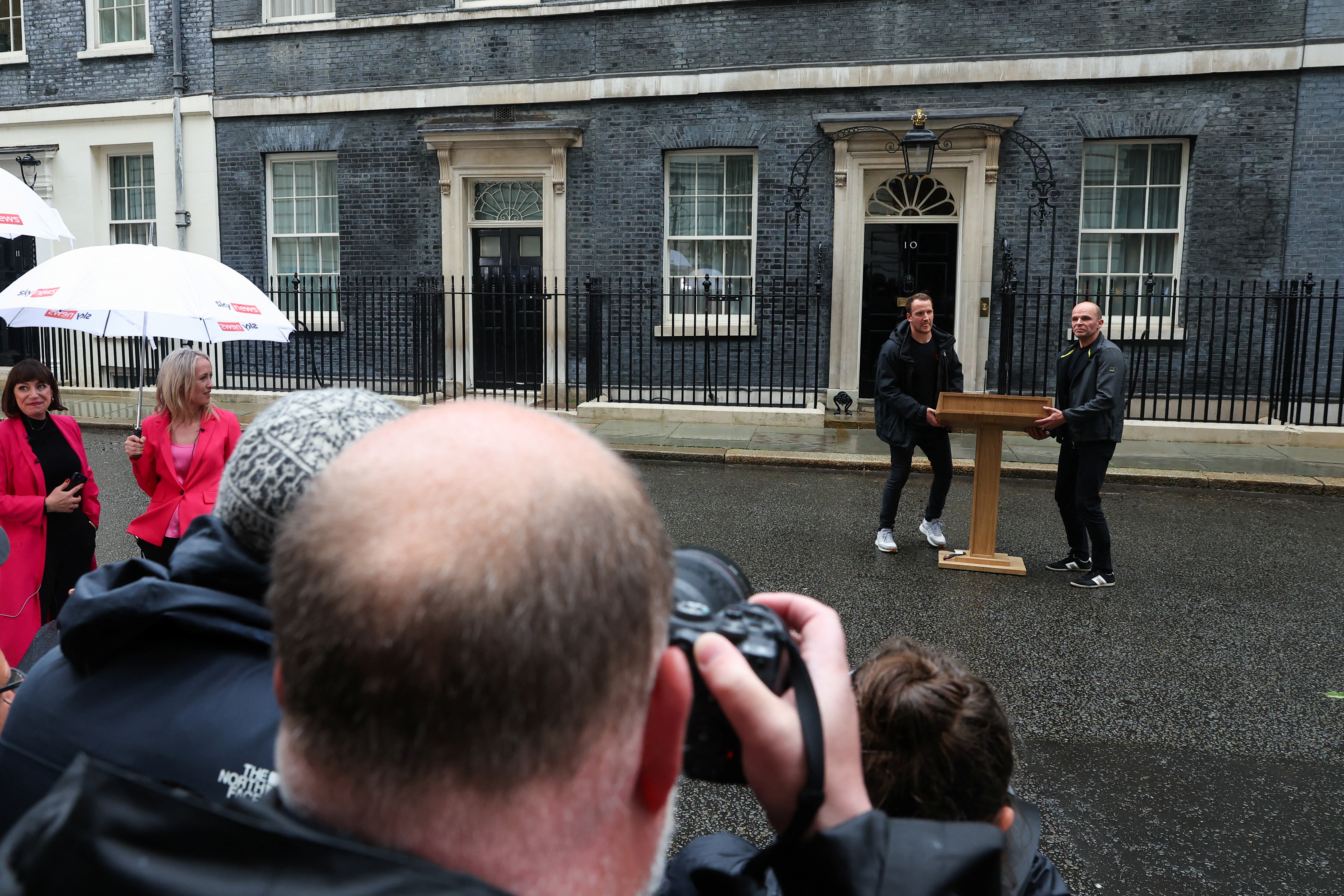 第1项,英国首相里什·苏纳克在伦敦唐宁街10号外发表讲话,2024年5月22日。路透社/托比·梅尔维尔