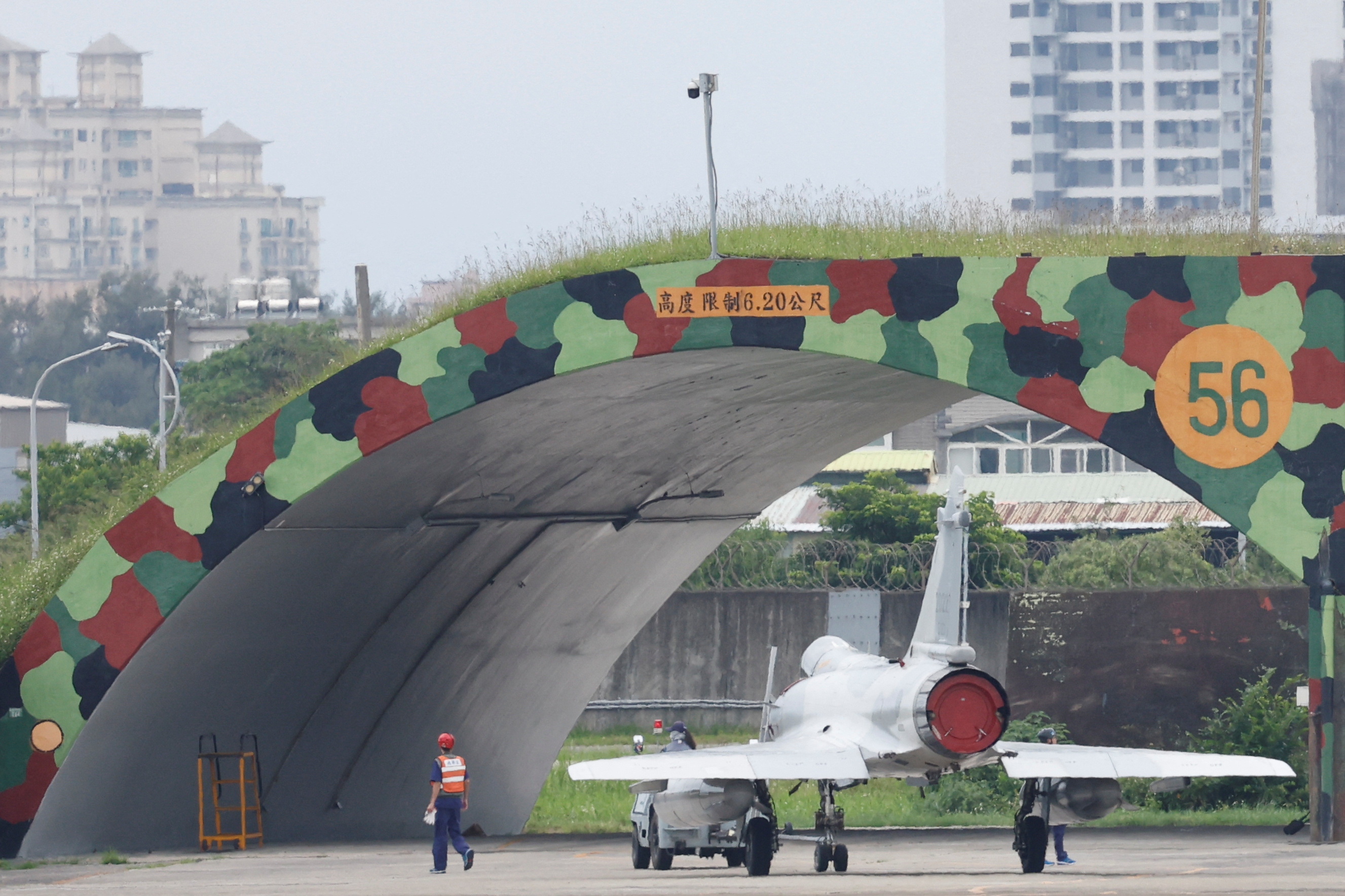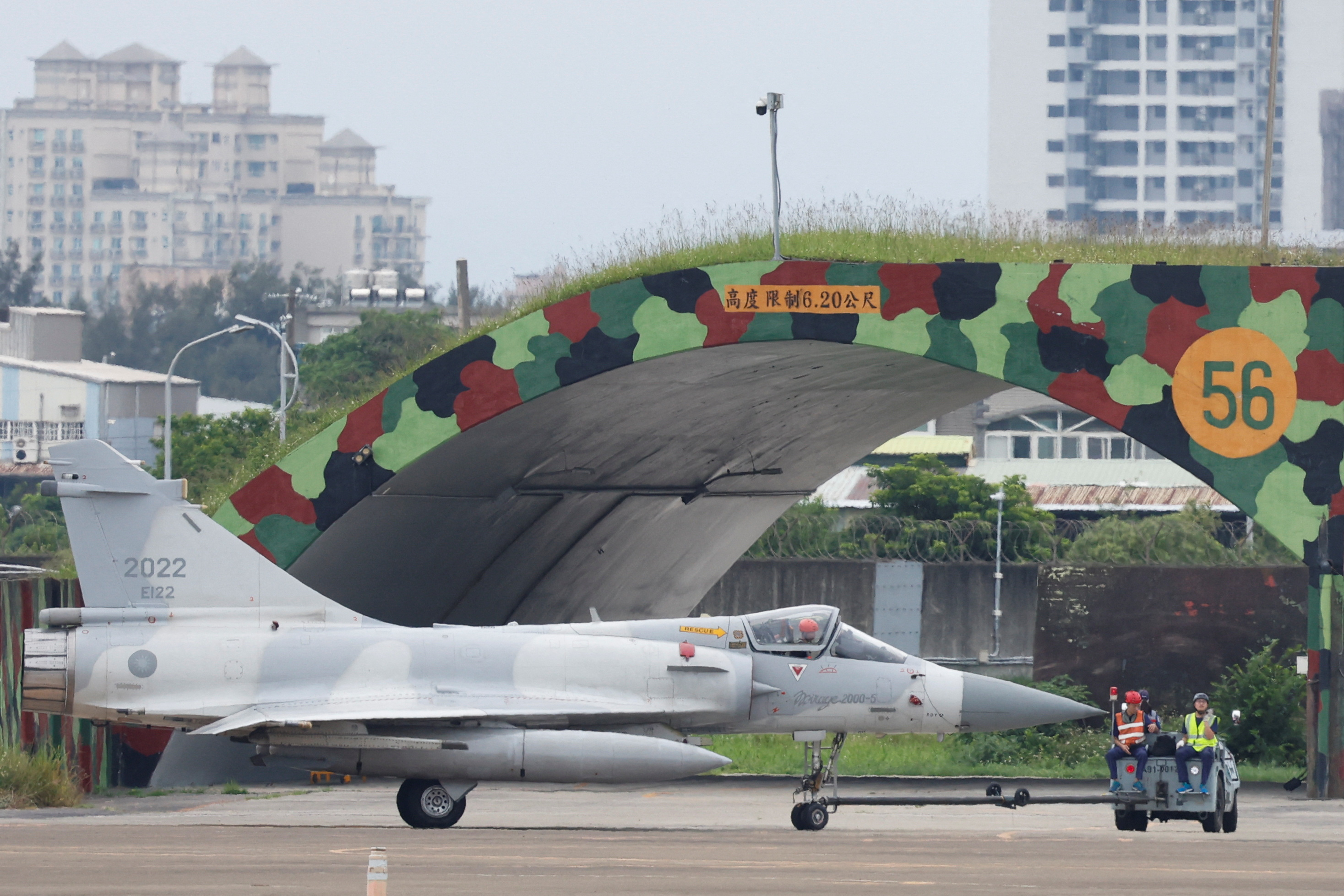 第1项,共6项 台湾空军Mirage 2000-5飞机在新竹空军基地准备起飞,摄于2024年5月23日。路透社/卡洛斯·加西亚·劳林斯