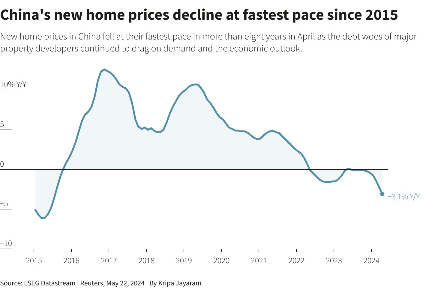 中国恒大集团在中国河北省石家庄郊区开发的未完成住宅建筑景观,2024年2月1日。路透社/王廷树/文件照片 香港,5月24日(路透社) - 中国上周宣布了“历史性”的措施,旨在稳定陷入危机的房地产行业,以清理库存并提振购房需求。到目前为止我们知道什么: