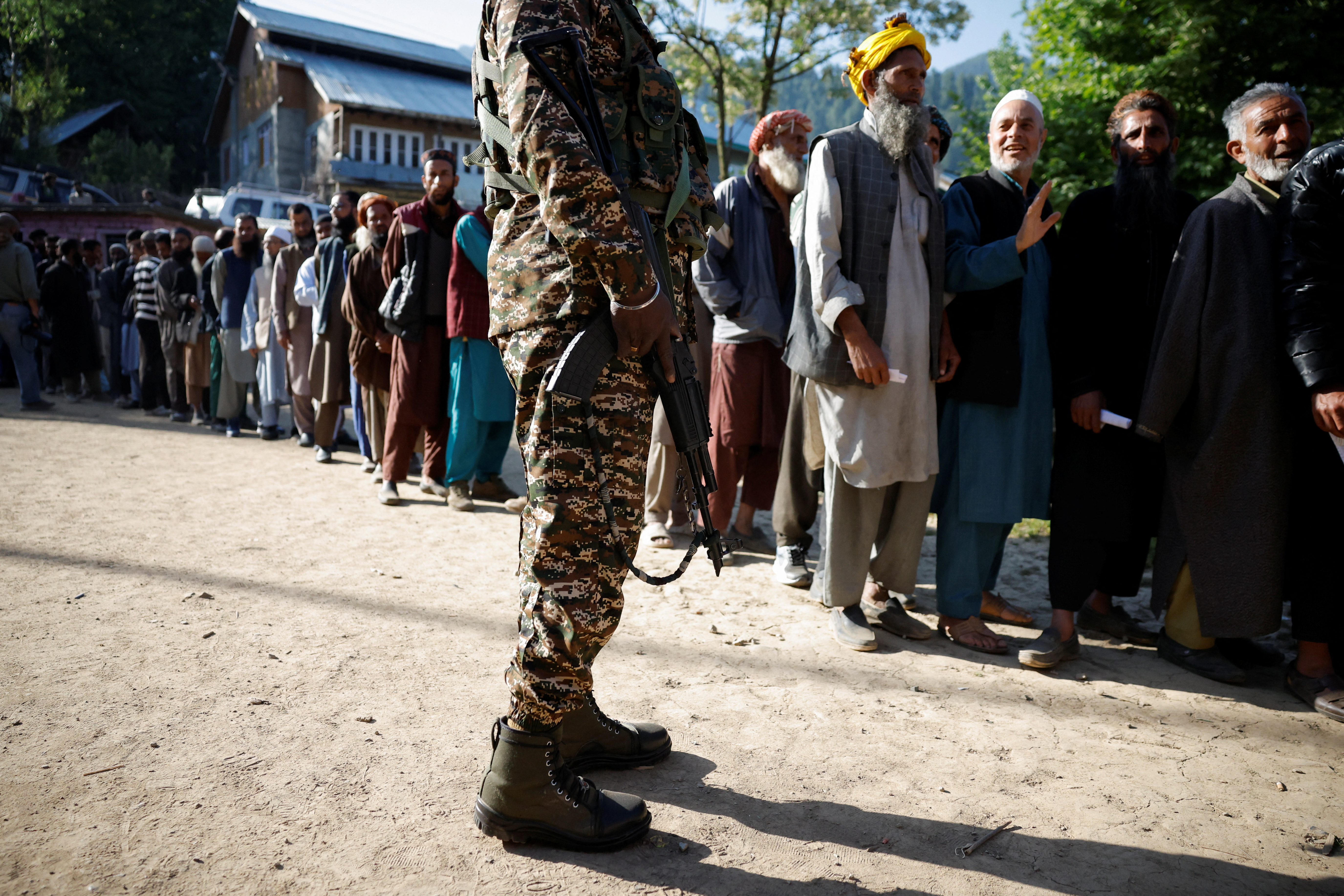第1项,人们在印度新德里的一个投票站排队等候投票,参加印度总理大选的第六阶段,2024年5月25日。路透社/Priyanshu Singh