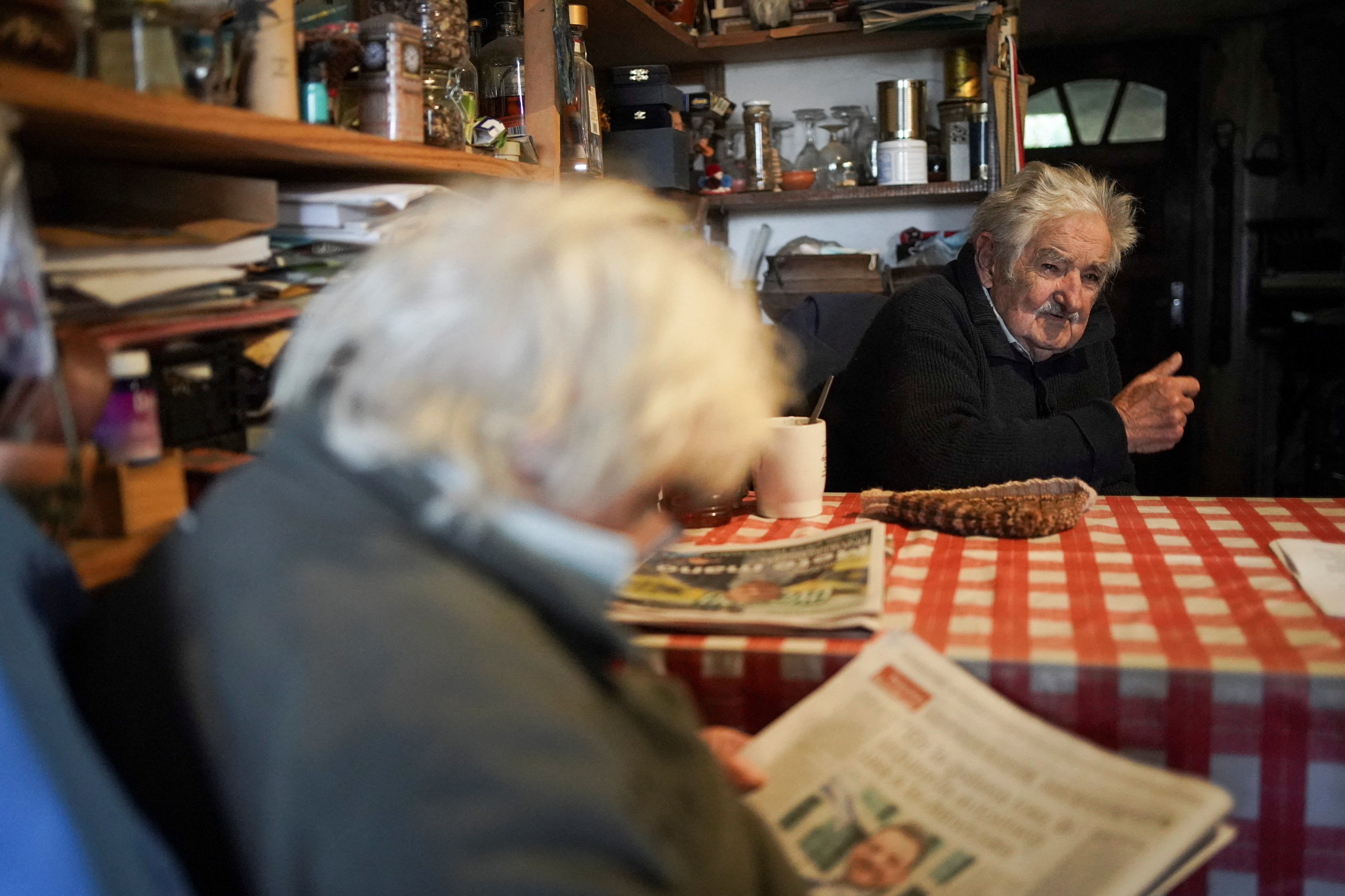他说,气候变化或许是政策上最大的“悲剧”。穆希卡坐在厨房桌前,他的妻子、前副总统和参议员露西亚·托波兰斯基坐在对面,她正在看报纸。