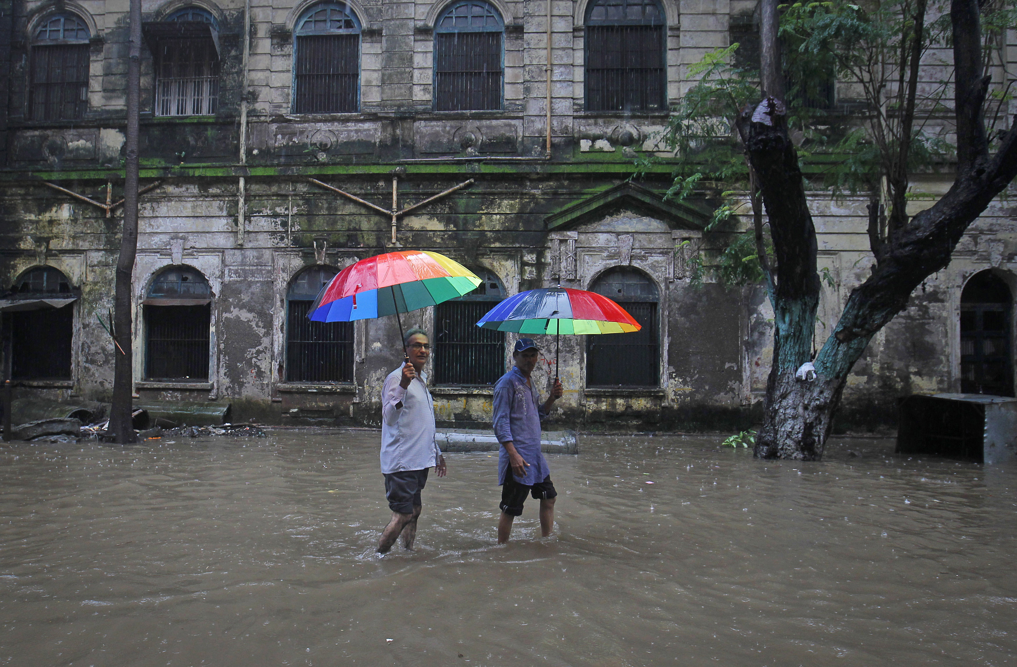 2 件物品中的第 1 件:在孟买,男子撑伞在洪水中行走,2013 年 7 月 12 日。路透社/丹尼什·西迪基/文件照片
