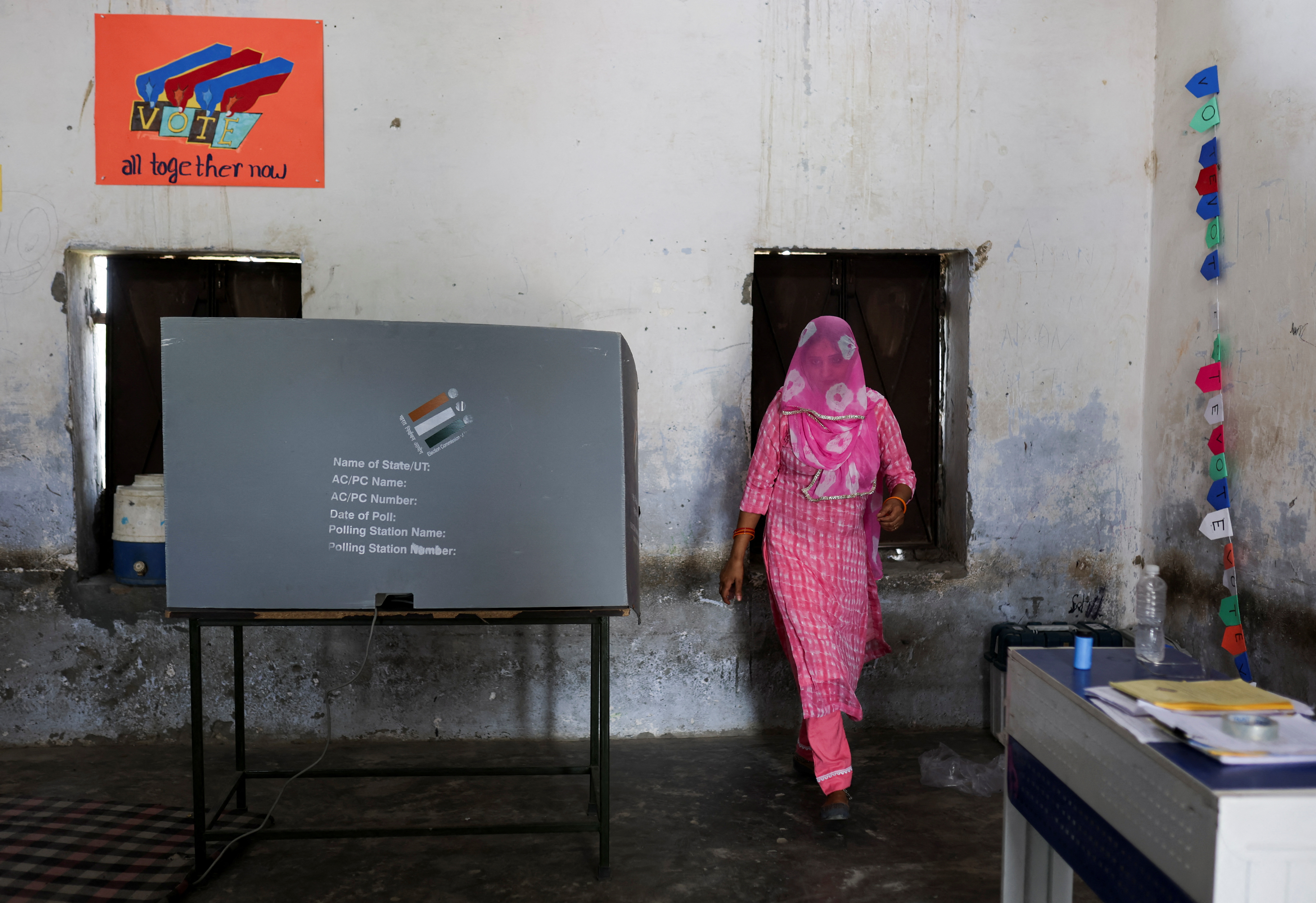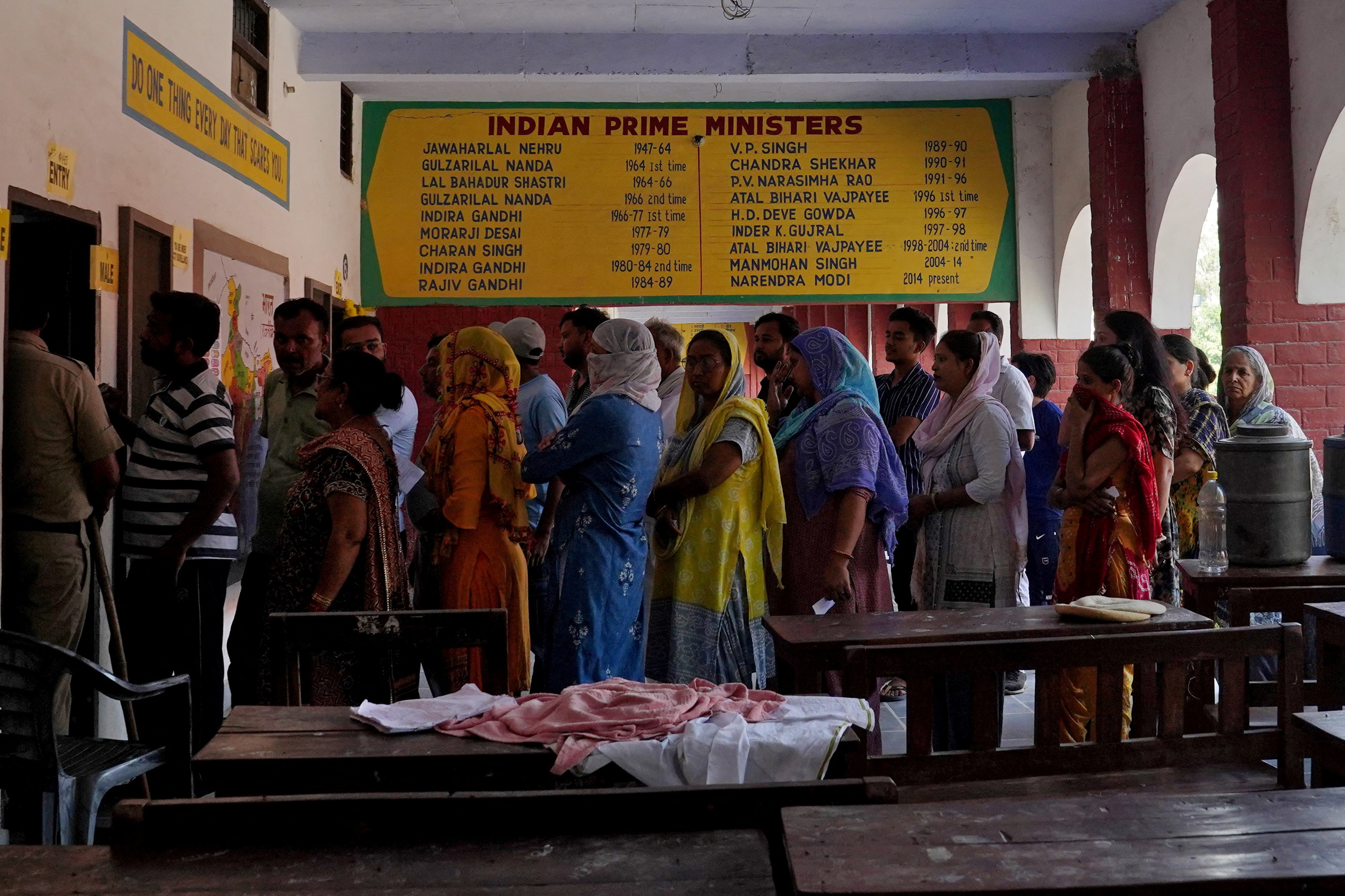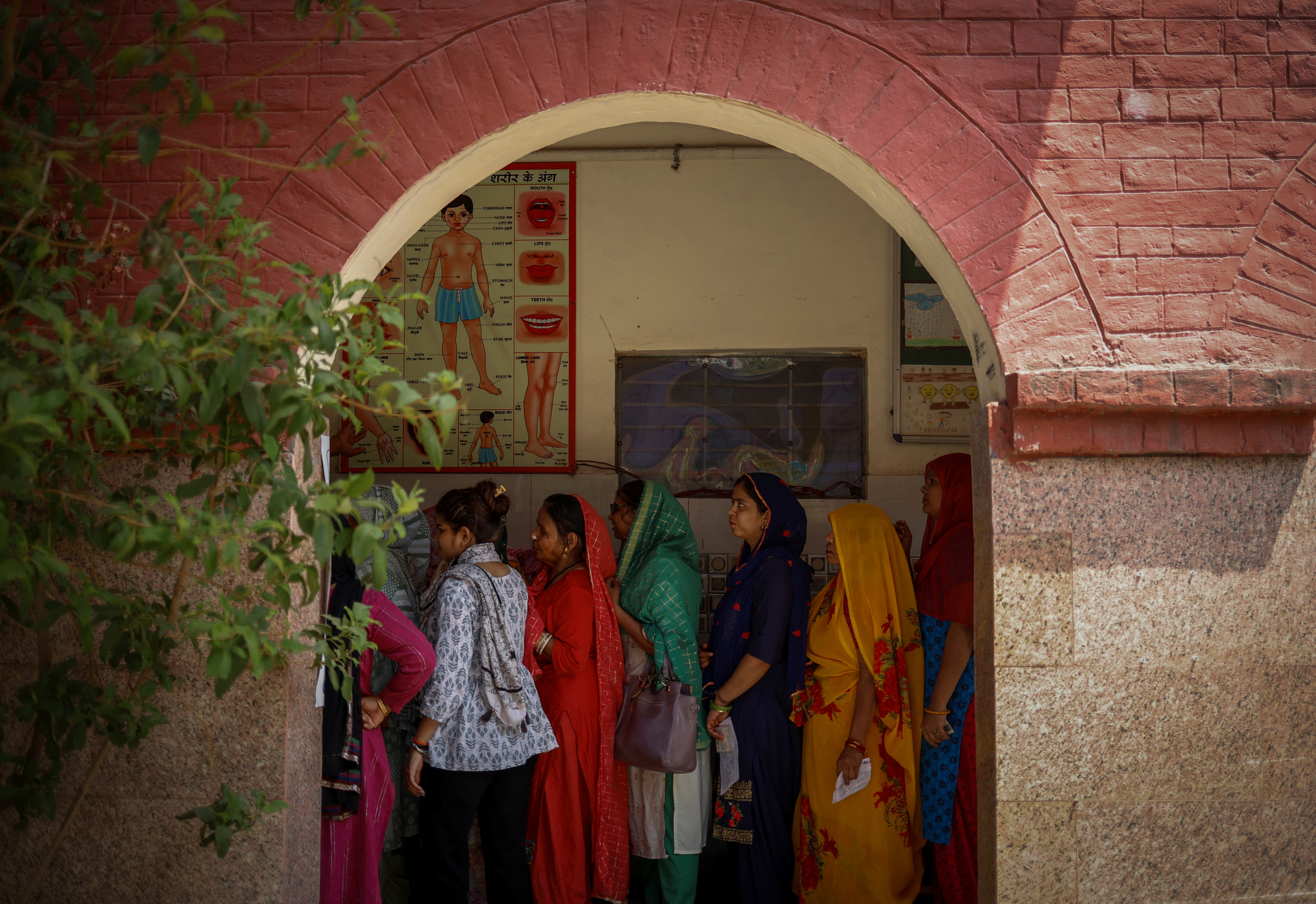 第1项,4项中的一项,印度新德里,2024年5月25日,在大选第六阶段,妇女们排队在投票站投票。路透社/阿德南·阿比迪/档案照片