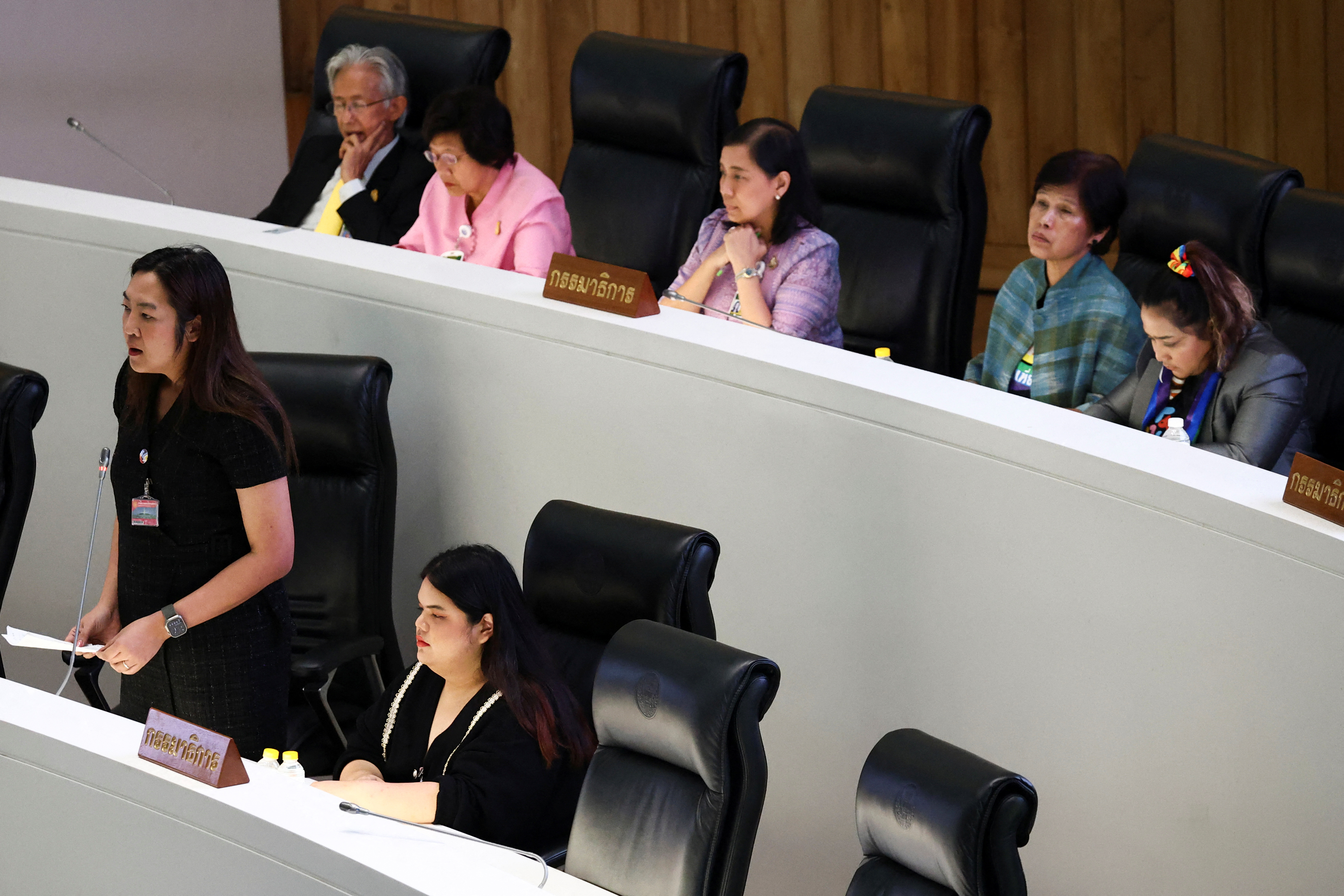 6名LGBTQ+社区成员在泰国曼谷,2024年6月18日,参议院通过同性婚姻平等法案的第二和第三次审议之前做出反应。这将使泰国成为亚洲第三个合法化同性婚姻的地区。路透社/查林尼·蒂拉苏帕