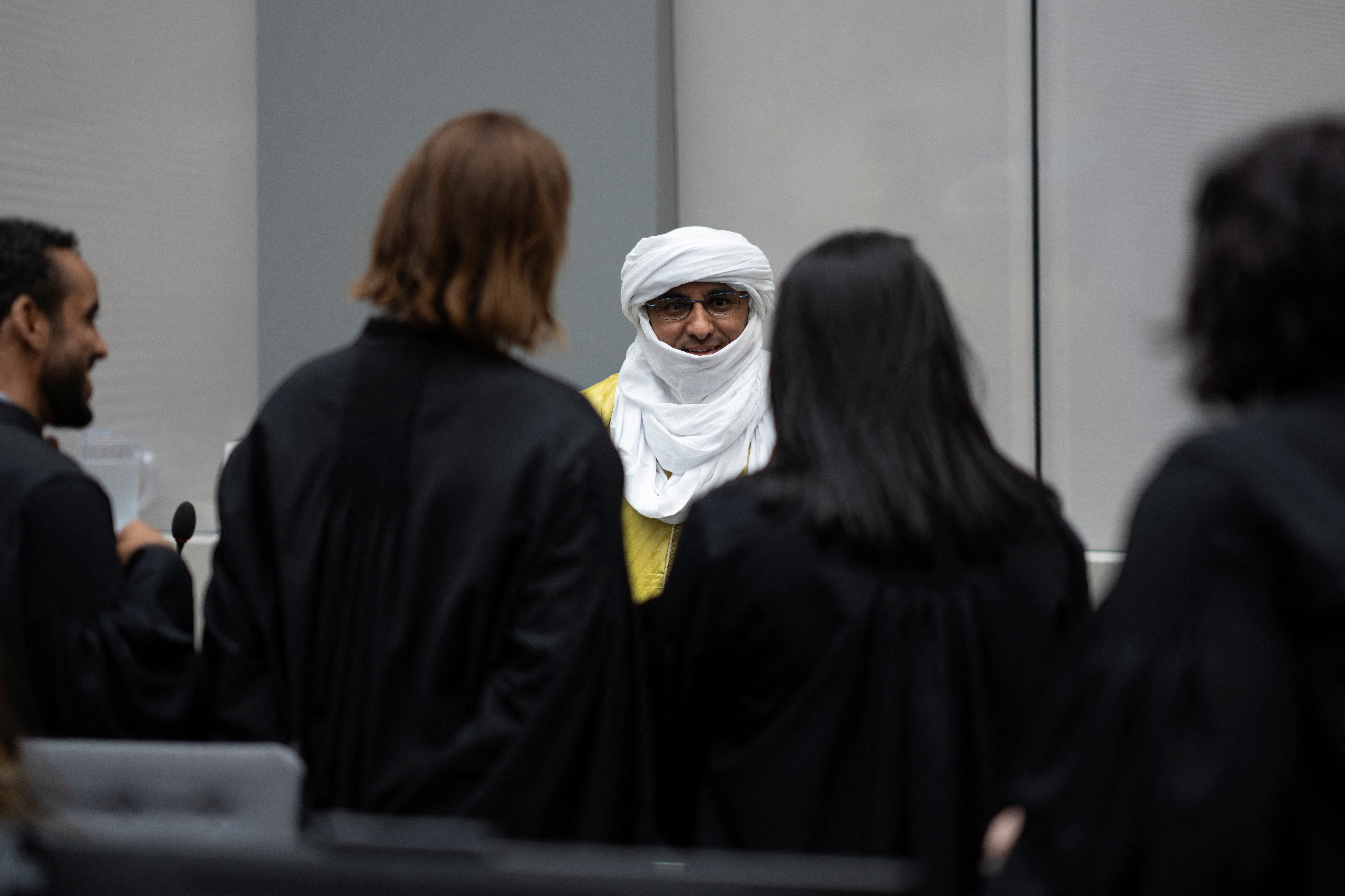第1项,阿尔哈桑·阿卜杜勒·阿齐兹·阿格·穆罕默德·阿格·马哈茂德在荷兰海牙的国际刑事法院法庭进入时站起来,2024年6月26日。 彼得·德容/路透社/泳池