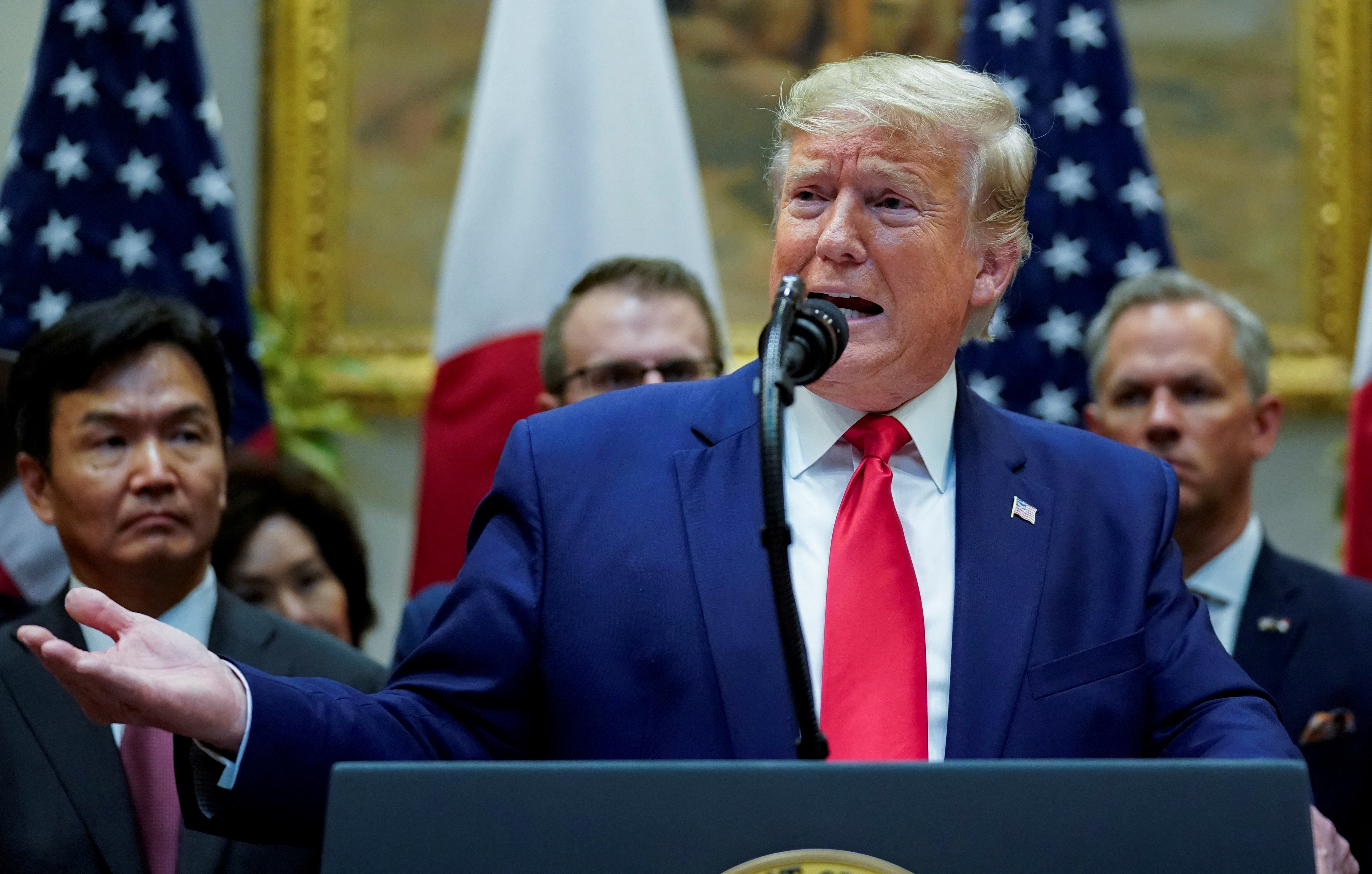 第1项,美国总统唐纳德·特朗普在华盛顿白宫举行的美日贸易协定正式签署仪式上讲话,2019年10月7日。路透社/凯文·拉马克/文件照片